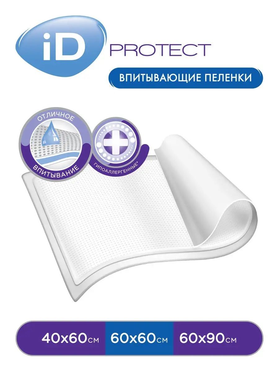 Комплектация пеленок iD ProtectНабор пеленок iD PROTECT 60х60 см - это выгодное предложение для людей, которые ищут экономичное решение для ухода за телом.