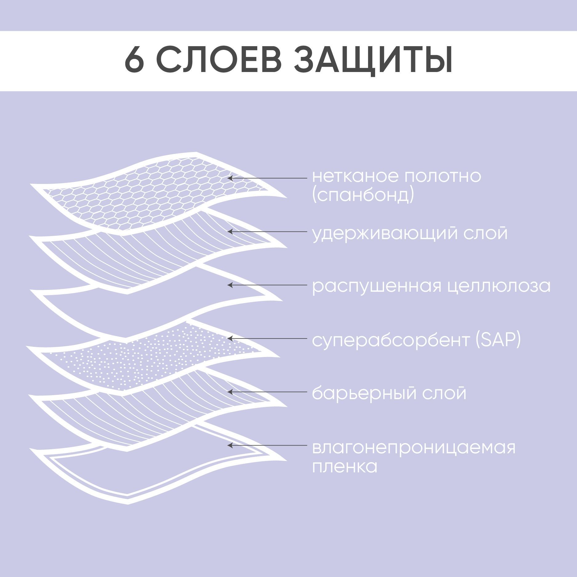 распущенная целлюлоза, нетканное полотно, суперабсорбент (SAP), бумага, полиэтилен, клей