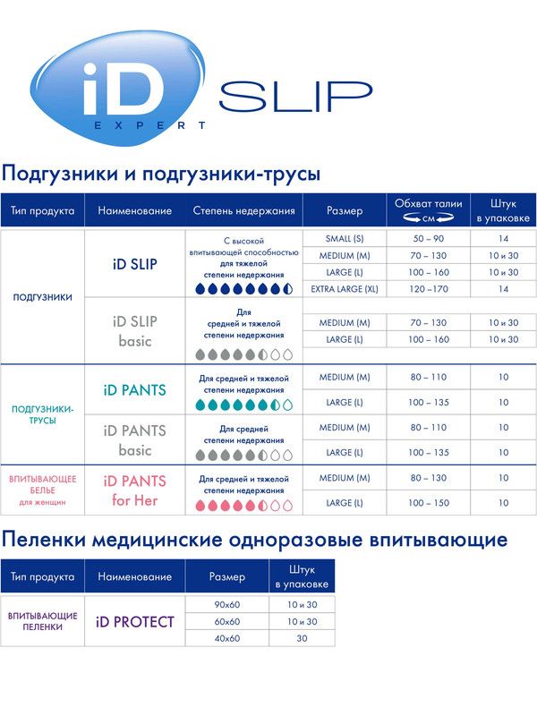 40x60 смВпитывающие пеленки iD PROTECT универсальны в использовании: они могут служить в качестве дополнительной защиты различных поверхностей (например, постельного белья, мебели) от намокания при использовании вместе с подгузниками, впитывающими трусами и урологическими прокладками, при смене подгузников, а также при проведении различных процедур. Одноразовые пеленки отлично впитывают и эффективно распределяют жидкость.Верхний слой пеленок выполнен из мягких, как хлопок, материалов, что обеспечивает комфорт при использовании, а нижний слой - из полиэтиленовой пленки, что исключает.