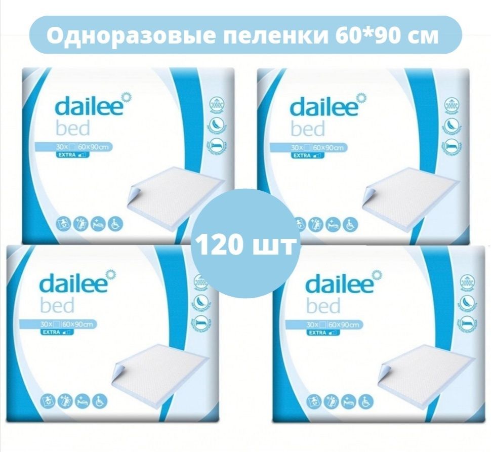 Пеленки медицинские впитывающие одноразовые Dailee размер 60*90 см. В коробке 4 пачки по 30шт.