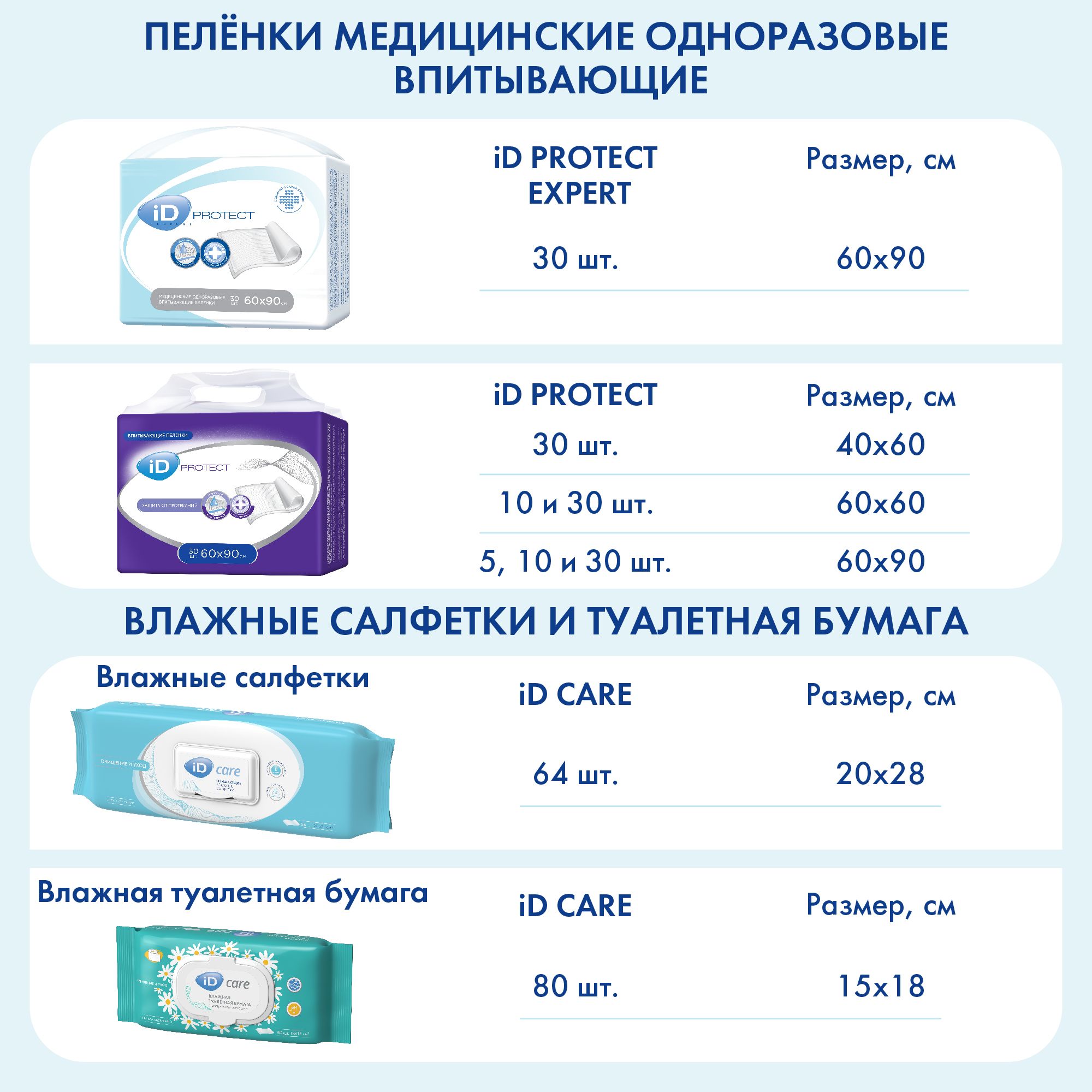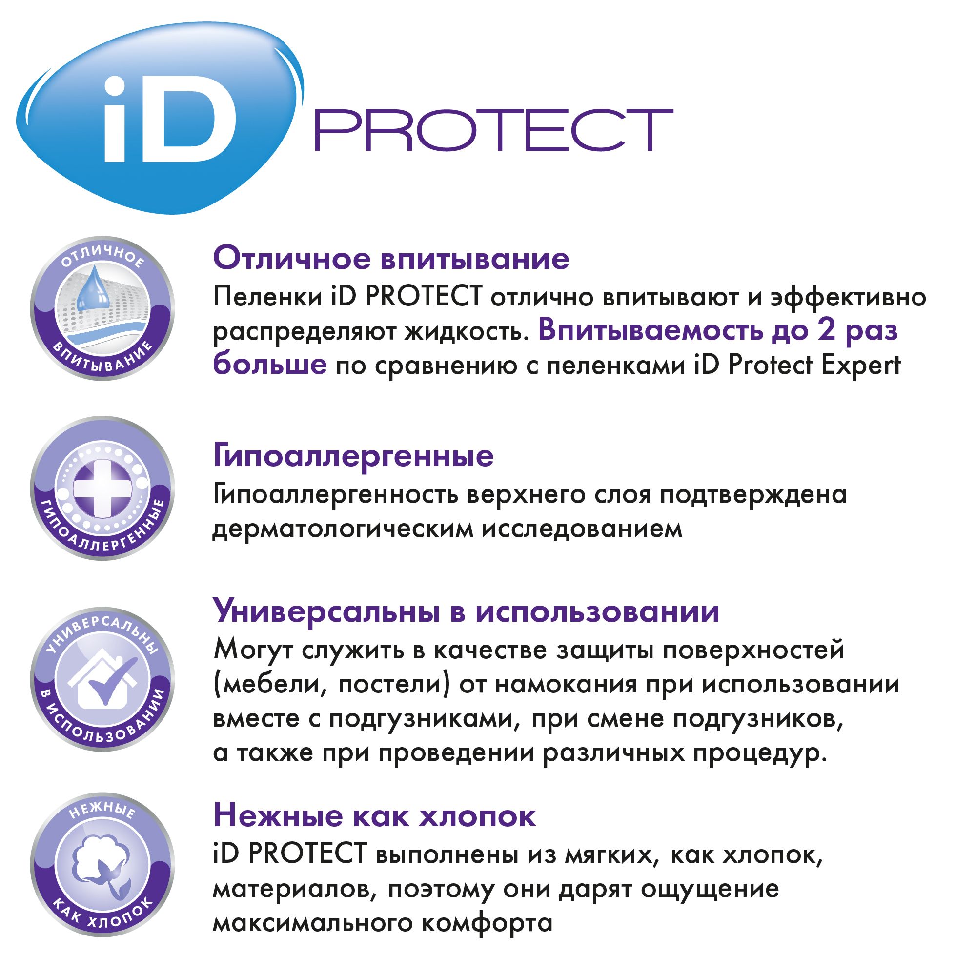 Пеленки одноразовые впитывающие для взрослых iD Protect 60 x 90 см 10 шт