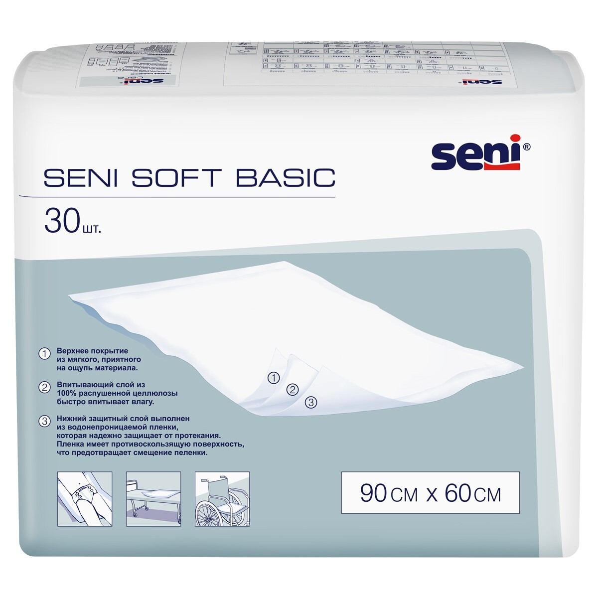 Пеленки впитывающие одноразовые медицинские Seni Soft Basic 90х60 см, 30 шт.