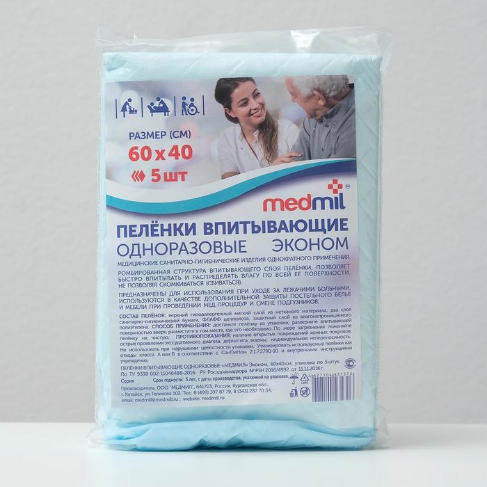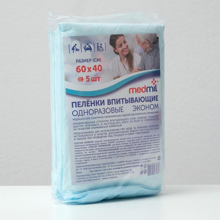 Пеленки впитывающие одноразовые Medmil Эконом, 60 40, 5 шт