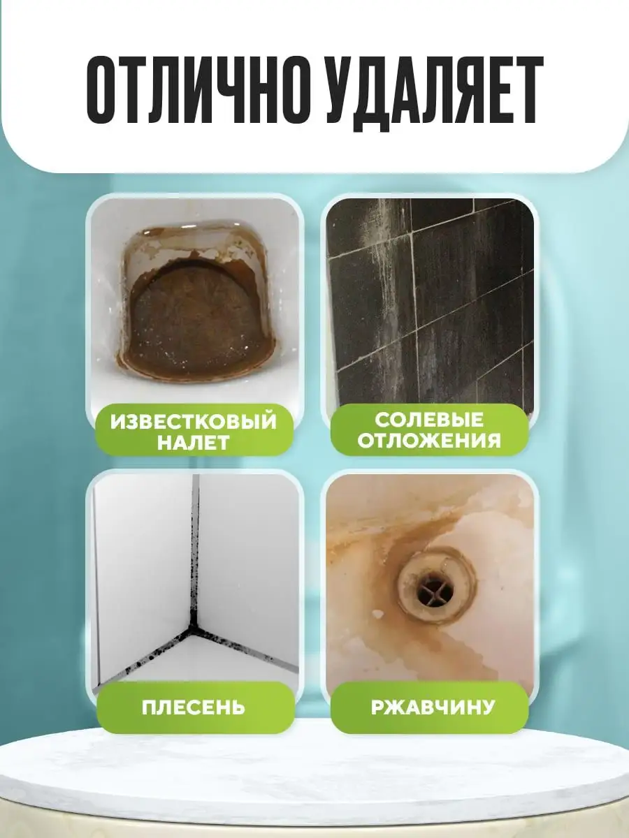 Эффект чистящего средства удаление ржавчины; удаление известкового налёта; очищение до блеска