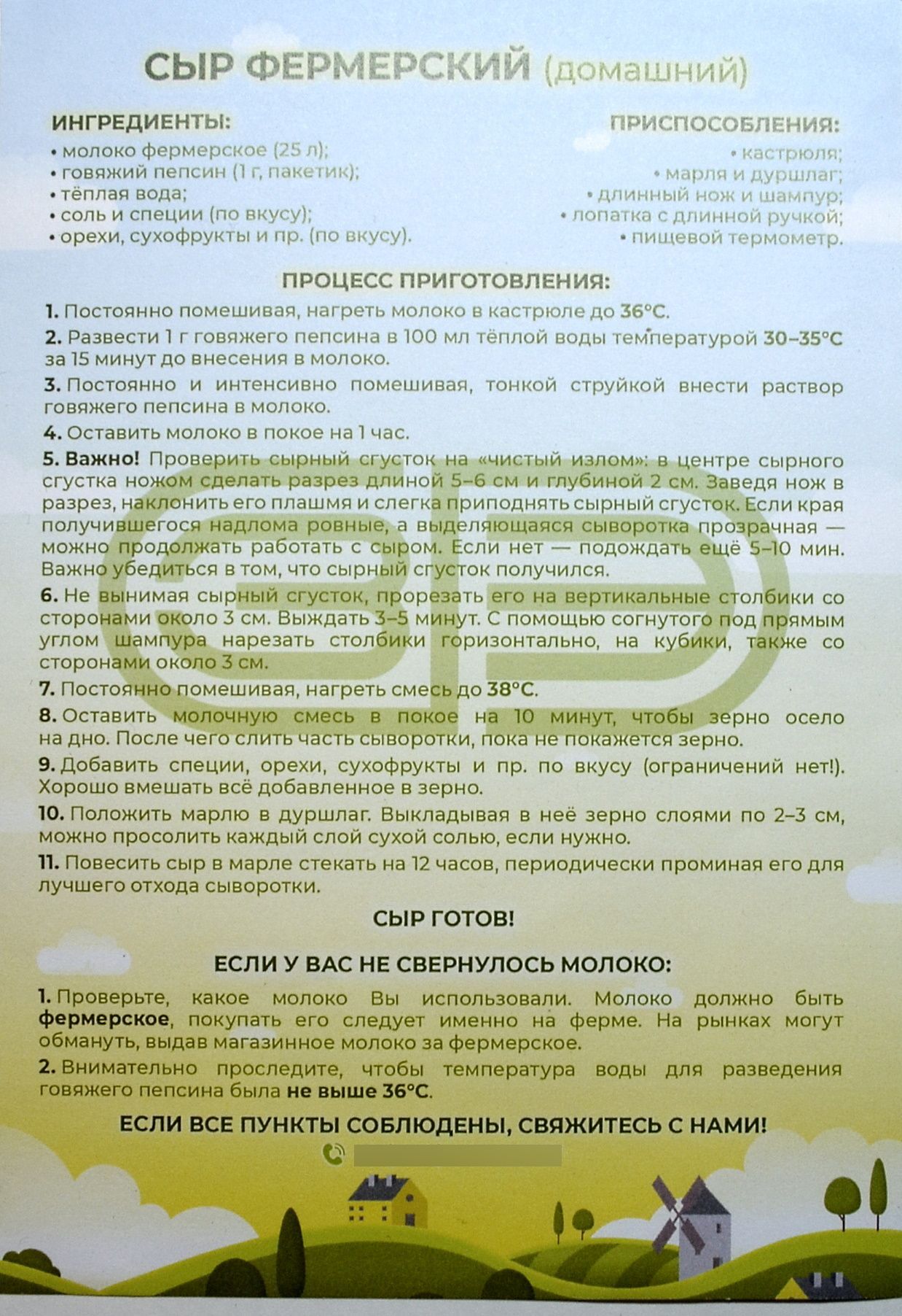 Описание: Пепсин говяжий - натуральный молокосвёртывающий фермент животного происхождения. Предназначен для сворачивания молока при изготовлении творога и рассольных сыров, таких как брынза, сулугуни, адыгейский, чечил и т.п.