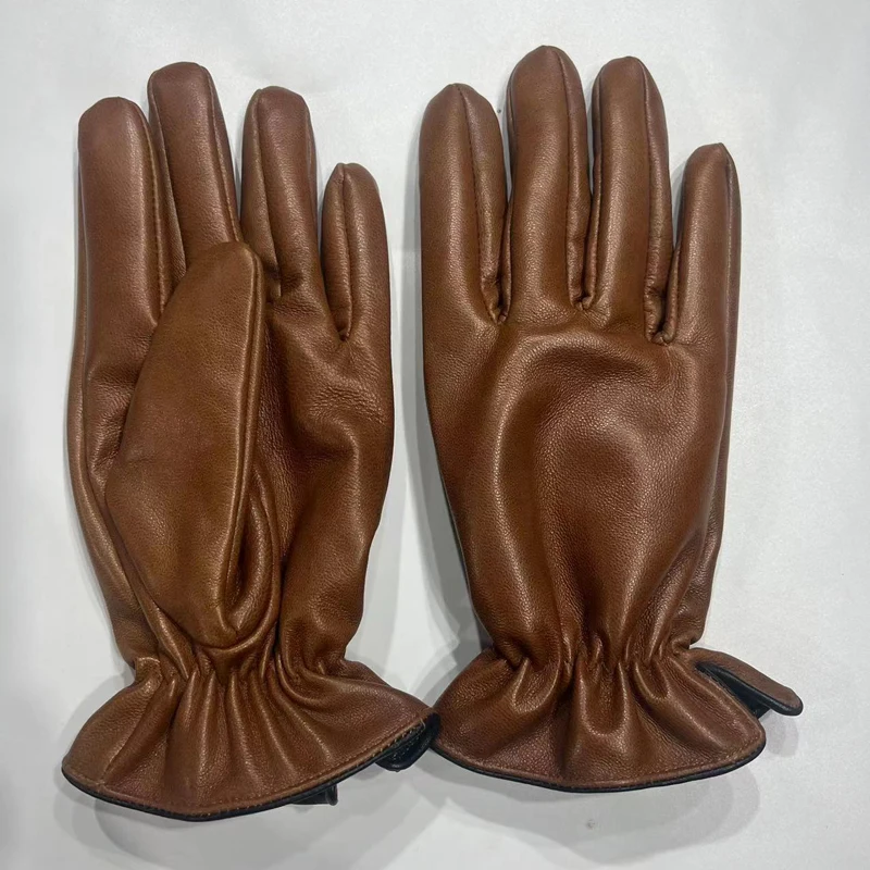 Перчатки мужские зимние из козьей кожи, варежки из растительного дубления, в стиле ретро, с коричневым бархатным утеплителем для сохранения тепла на запястье