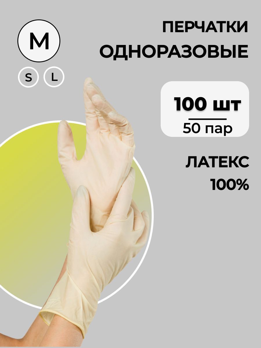 Перчатки одноразовые, латексные, M, IMP, 100 шт/50 пар, бежевые