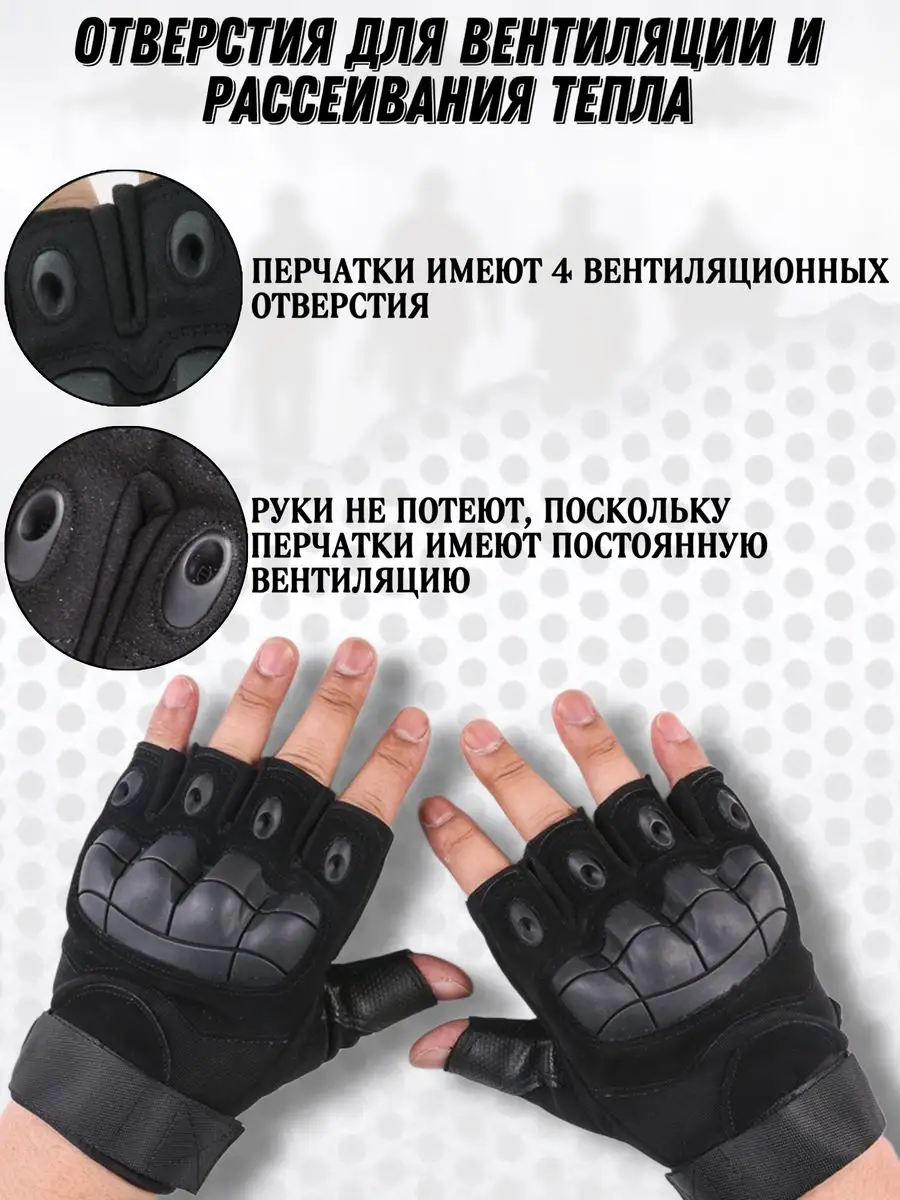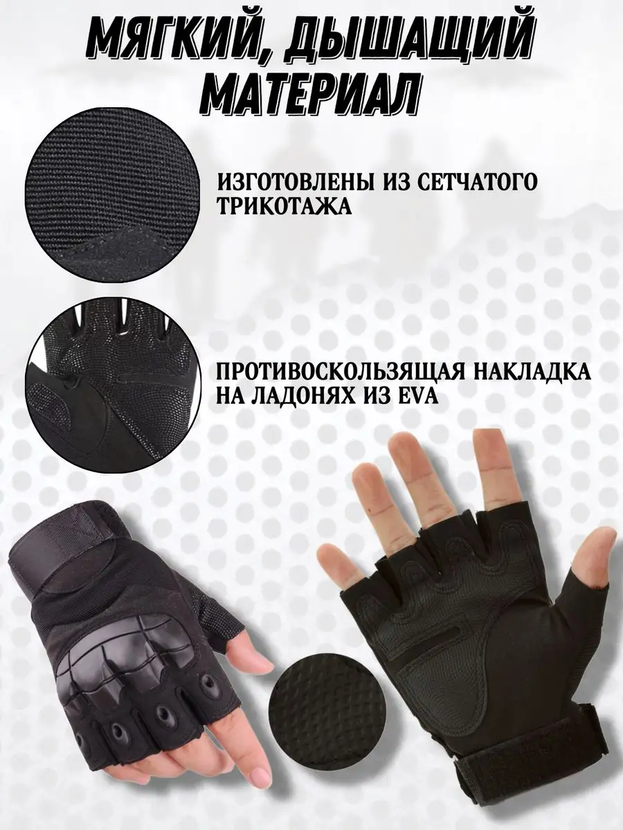 Описание: Тактические перчатки беспалые бренда GeV-Ko – идеальный выбор для любых видов активного отдыха. Они обладают особой конструкцией, оснащены накладкой с поролоновой вставкой на ладони. Для защиты костяшки предусмотрена твёрдая полимерная прорезиненная пластина. Вместо манжет использовалась усиленная высокая липучка, обеспечивающая надежную фиксацию кисти. На пальцах есть вентиляционные отверстия с прорезями для рассеивания влаги. В таких аксессуарах не только обеспечена защита рук, но и есть возможность использования телефонов и других гаджетов с сенсорными экраном. В нашей новой коллекции они представлены в разных вариациях. Есть как демисезонные (весенние и осенние), летние, так и зимние модели с влагостойким покрытием. Предложены изделия с открытыми и закрытыми пальцами. Можно выбрать как облегченные варианты из сетчатого трикотажа, так и утепленные перчатки с флисовой или теплой меховой подкладкой, из водоотталкивающего (непромокаемого) материала. Они предложены в черных и зеленых (хаки), оливковых и песочных расцветках. Прочные хлопковые мотоперчатки с сеточкой подойдут для взрослых женщин и мужчин, девочек и мальчиков - подростков. Тканевые аксессуары без пальцев и с пальцами представлены в большой размерной сетке. Они станут идеальны дополнением лыжной и армейской экипировки, стрелкового снаряжения. Они идеальны для мотоциклиста, катания на мотоцикле и снегоходе, квадроцикле. Пара современных, красивых аксессуаров пригодится для турников и спортзала, дополнит набор самообороны. Весной, зимой и осенью изделия подойдут для страйкбола и рыбалки, работы в машине и стрельбы. Они станут лучшим выбором для туристических походов и мотокросса, пригодятся всем любителям альпинизма и сноуборда, охоты. Такие аксессуары окажутся отличным подарком для всех дорогих сердцу людей. Преподнести их можно на любой праздник. У нас есть акции и распродажи, вы можете купить наши товары в подарок со скидкой!