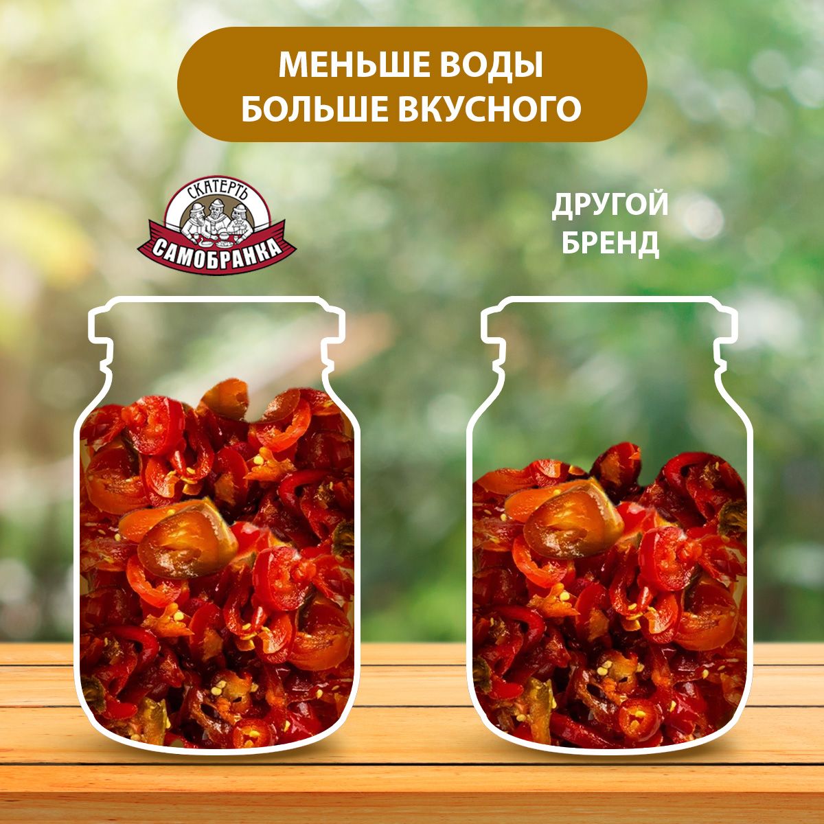 Описание: Скатерть-Самобранка - одна из лидирующих марок на рынке плодоовощной консервации РФ, известная своей продукцией, приготовленной в лучших традициях домашнего консервирования. Вкусные маринованные огурцы, хрустящие корнишоны, томаты, имбирь, маринованный перец, халапеньо и другие овощи, а также множество видов грибов, традиционные соленые огурцы и различные ассорти солений, зеленый горошек, сладкая кукуруза, консервированные фрукты и ягоды. Помимо этого, производятся и разнообразные готовые закуски, такие как лечо, икра и черемша - все это и многое другое изготавливается с любовью из отборного и экологически чистого сырья.