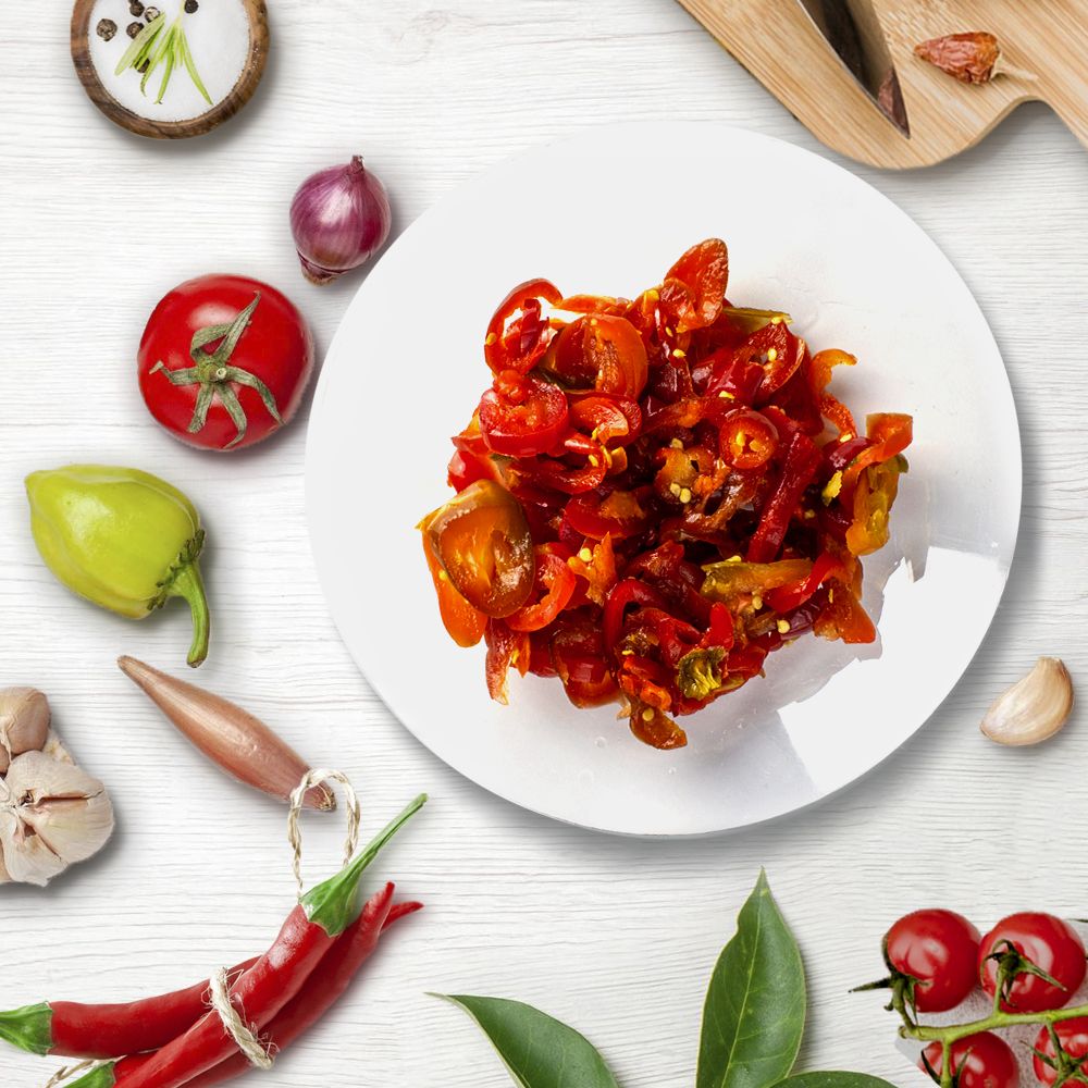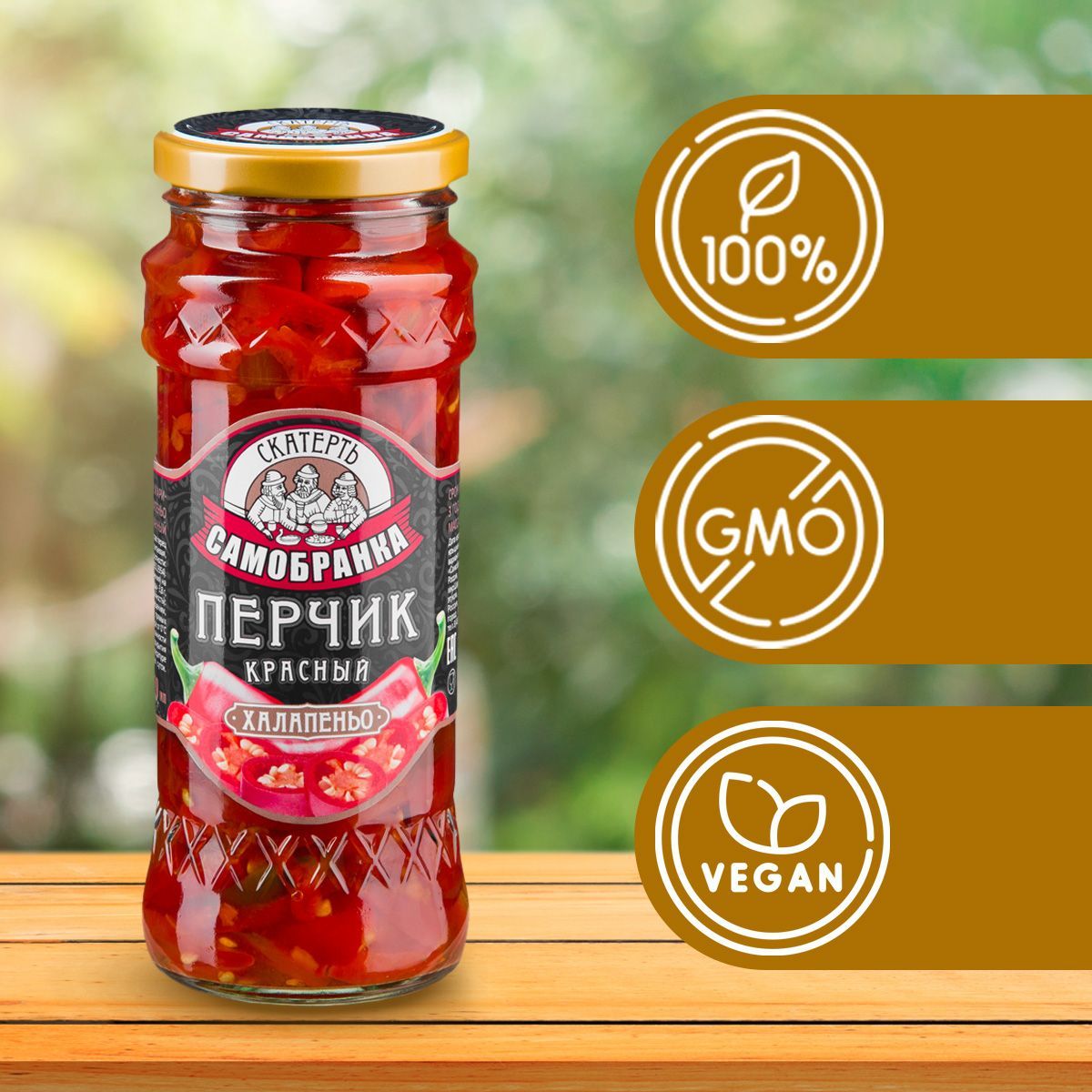 Перец халапеньо - лидер продаж нашей компании! Перчик халапеньо красный - это разновидность перца чили, который ценится за свои необычные вкусовые качества. Благодаря сбалансированному составу маринада, перчик сохранил свой аромат и природную хрусткость. Продукт обладает выразительным насыщенным ароматом типичным для маринованного перца халапеньо. Обладает острым вкусом с легкой хрустинкой. Может использоваться в качестве самостоятельной закуски, а также станет незаменимым ингредиентом для придания остроты при приготовлении многочисленных блюд. Острый и пикантный перец красного цвета. Халапеньо - один из самых популярных перцев в мире и является основным ингредиентом в мексиканской, испанской, итальянской кухне. Лучший ингредиент в пицце, паэлье, такос, шаурме, а также хорошая самостоятельная закуска.