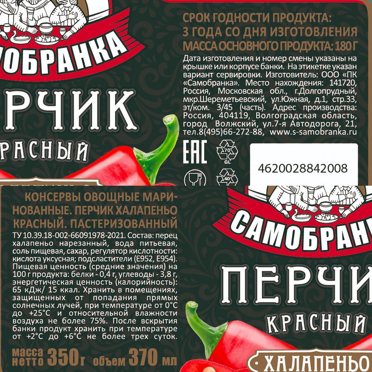 Перчик 2 шт. по 370 мл./350 гр. халапеньо красный острый, Скатерть-Самобранка
