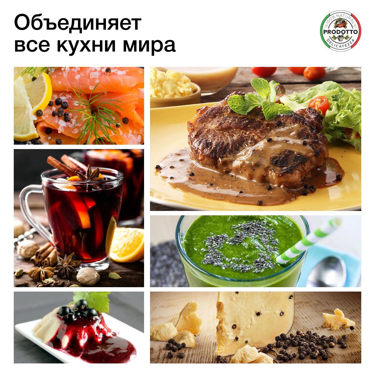 Описание: Черный перец считается одной из самых популярных специй. Его можно использовать как приправу практически ко всем основным блюдам. Отлично подходит данная специя для улучшения запаха и вкуса различных мясных и рыбных блюд, холодных закусок и салатов.