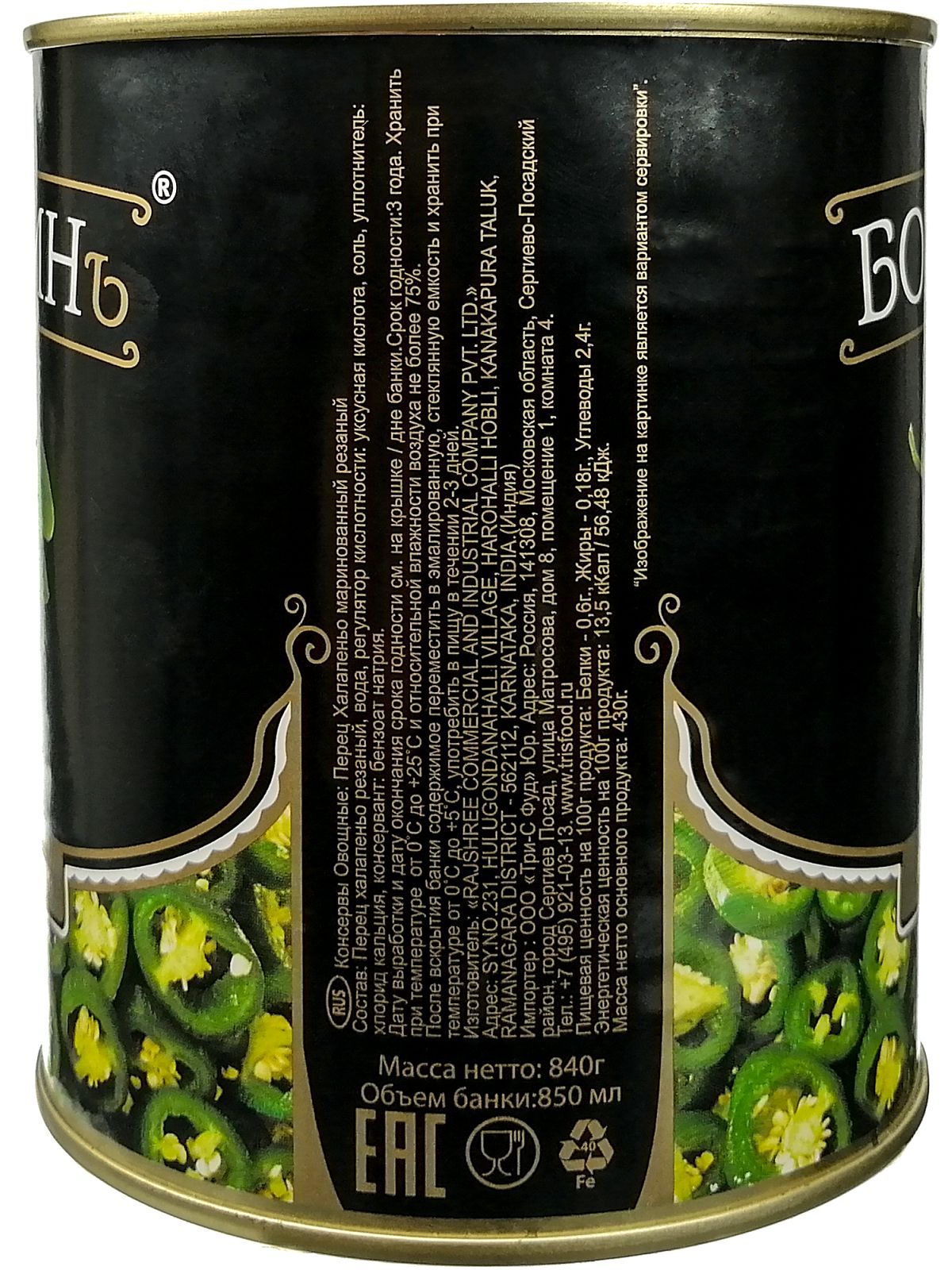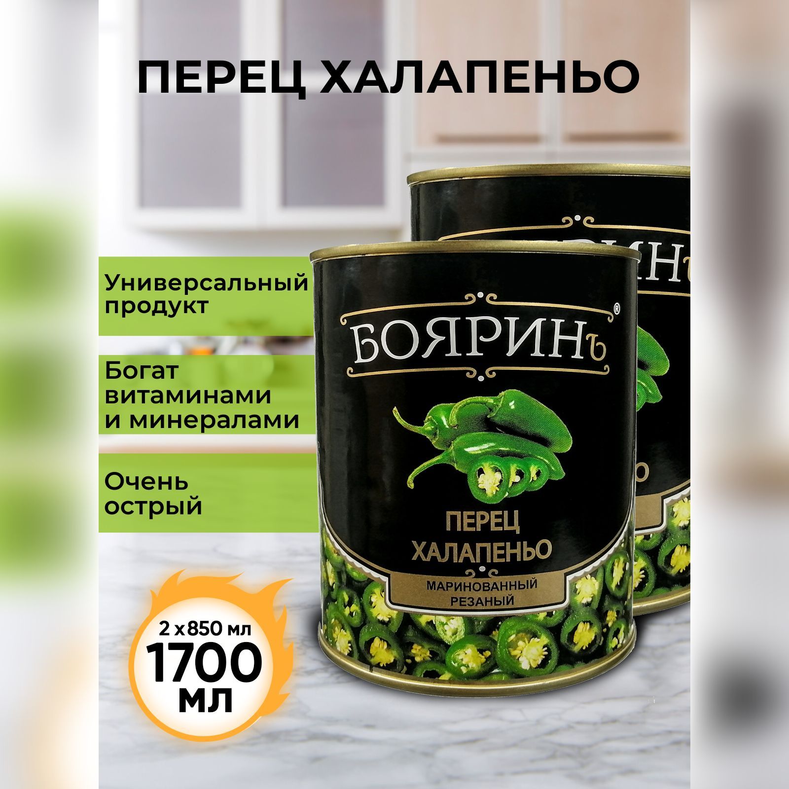 Перец халапеньо Бояринъ зеленый резаный маринованный, 850 мл - 2 шт