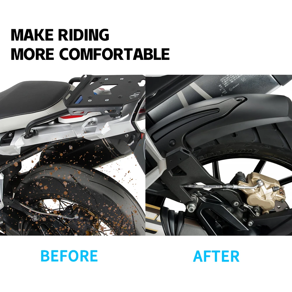 Эта защита от брызг заднего колеса и GSA продлевают крыло вперед, уменьшая количество брызг колеса, который попадает на ваши сапоги и ноги. И, возможно, что более важно, защищает задний удар от грязи и грязи.