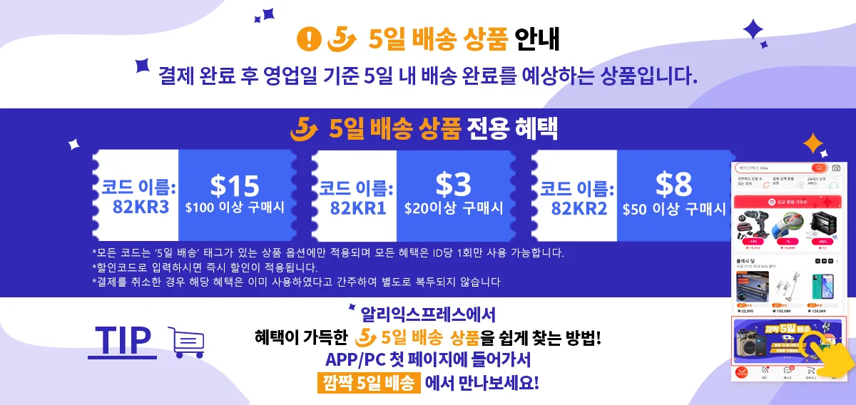 Используйте доставку, выбранную Кореей, обычно доставка осуществляется в течение 5 дней, и вы можете использовать соответствующий код 20-3.