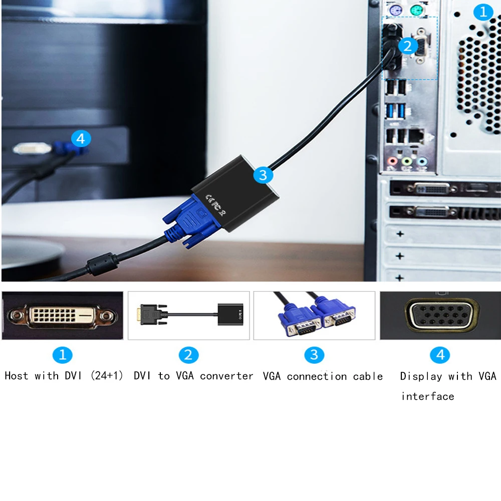 Этот адаптер DVI-VGA позволяет подключать стандартный аналоговый монитор, проектор или ЖК-дисплей, который использует разъем VGA или кабель, к ноутбуку, DVD, ТВ-приставке, проигрывателю Blu-ray, компьютеру, проектору.