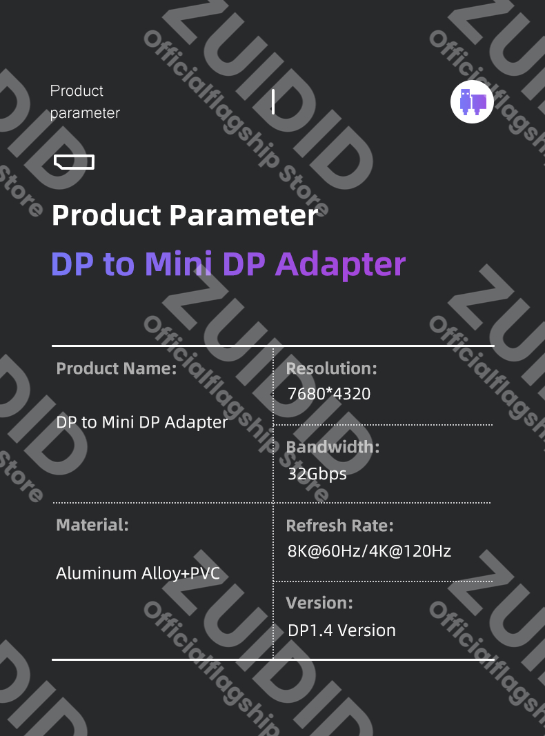 Номер модели Mini DP to Displayport 1.4 Adapter Converter