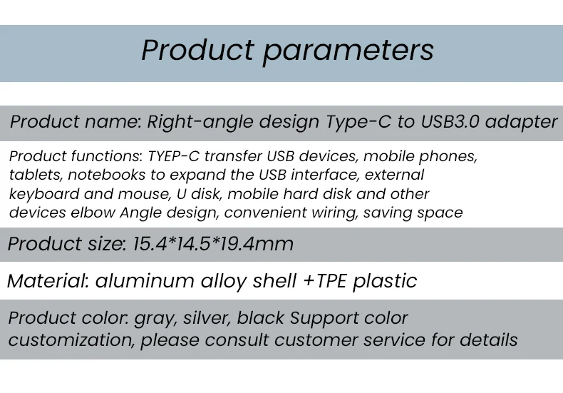 Product name Right-angle design Type-c to USB3.0 adapter
