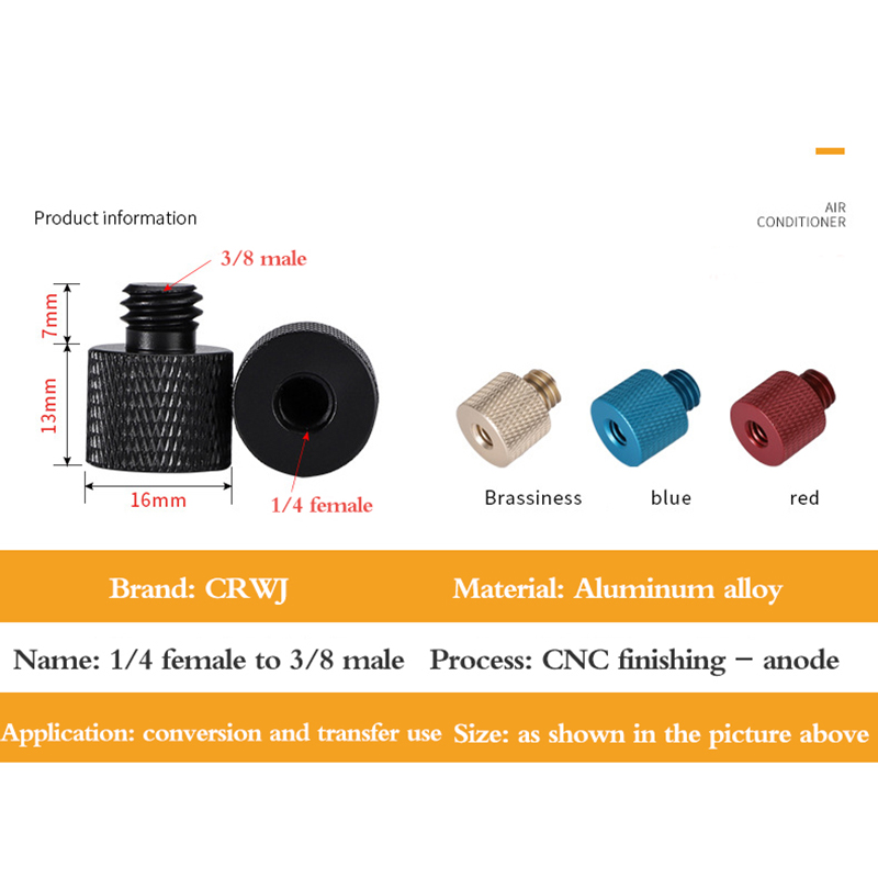 Muti-Function-втулка винта камеры может быть объединена в три способа преобразования винта или втулки. Его можно прикрепить к различным аксессуарам для фотосъемки. Такие как держатель для зонта, поворотная световая подставка, штатив, монопод, быстросъемная/QR-пластина и многое другое.