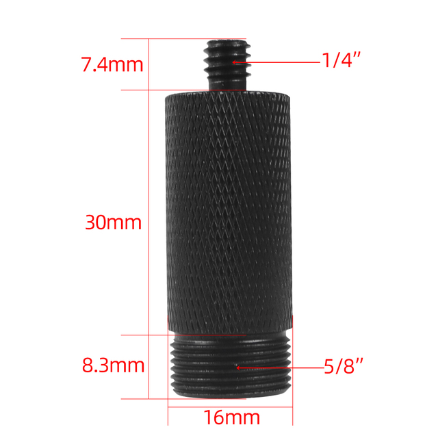 От 1,1/4 до 1/4, от 1/4 до 3/8, от 1/4 до 5/8 для переходного винта микрофона;