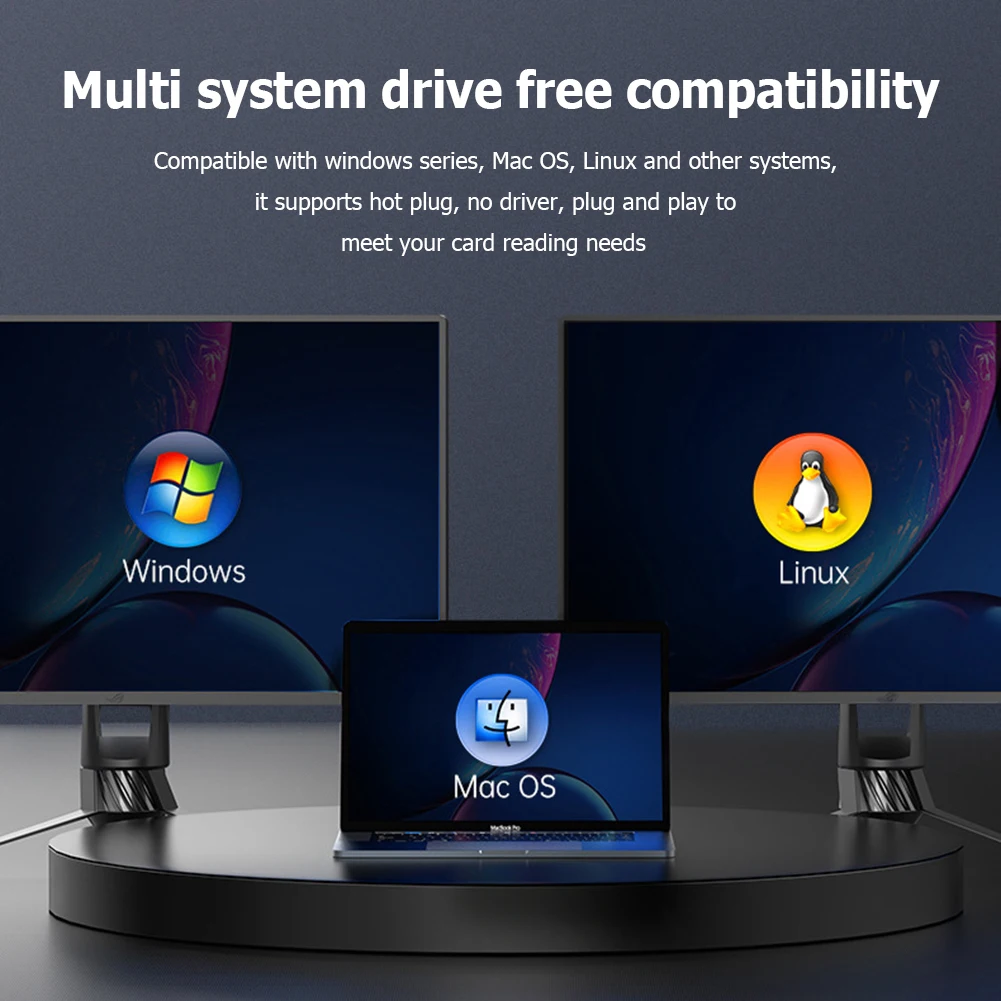 Совместимость с несколькими системами без драйверов: совместимость с серией Windows/Mac OS / Linux и другими системами, поддержка горячей замены, отсутствие драйвера, подключи и работай, для удовлетворения потребностей чтения карт