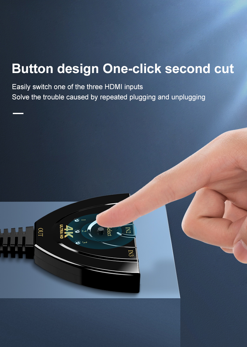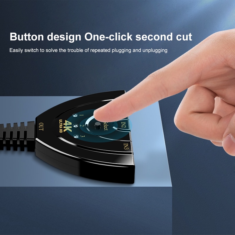 【Переключение вручную 】 Интеллектуальный разветвитель ручного управления-имеет функцию переключения нажатием кнопки. Вы можете подключить устройства HDMI и просто нажать кнопку переключения, чтобы изменить сигнал за секунду. Легко переключайтесь между 3 источниками входного сигнала HDMI без необходимости подключать или извлекать устройства, без проблем между рабочим временем и временем воспроизведения.