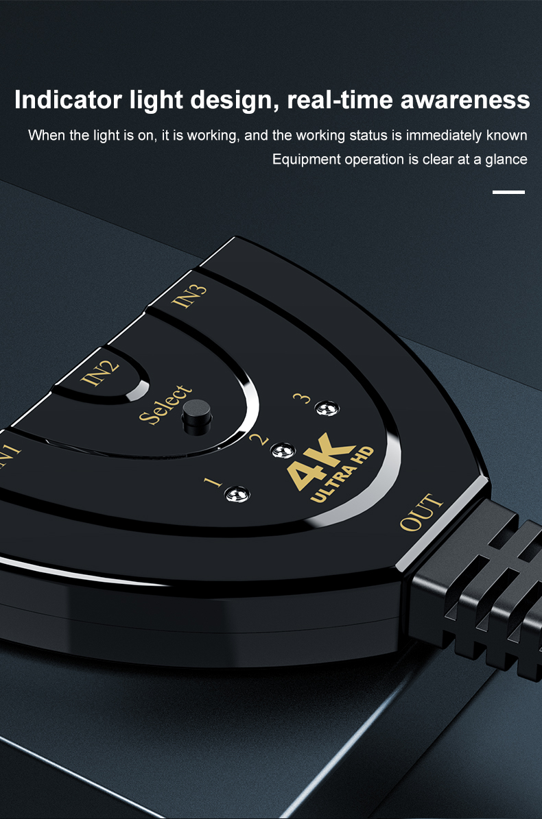 Переключатель 3-в-1, разветвитель с 3-мя портами, 4k * 2K, с индикатором для DVD, HDTV, Xbox, PS3, PS4