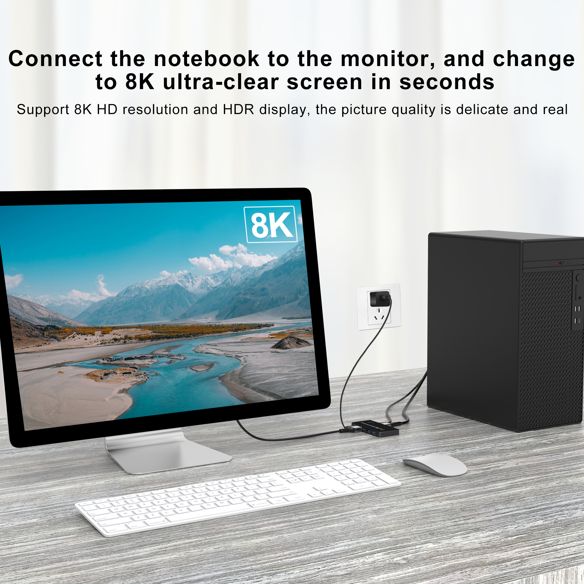 Разрешение, которое вы хотите вывести. Два персональных компьютера используют один экран (нажмите кнопку «выбрать», чтобы переключаться между ними).*** Максимальный кабель HDMI 8K поддерживает 2 м + 2 м.