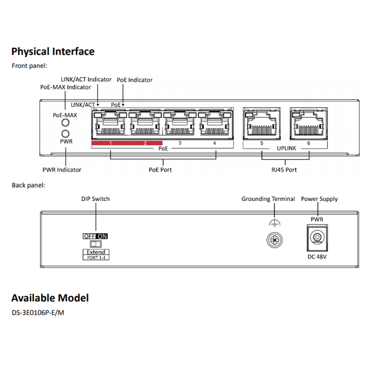 Номер модели DS-3E0106P-E / DS-3E0110SP-E