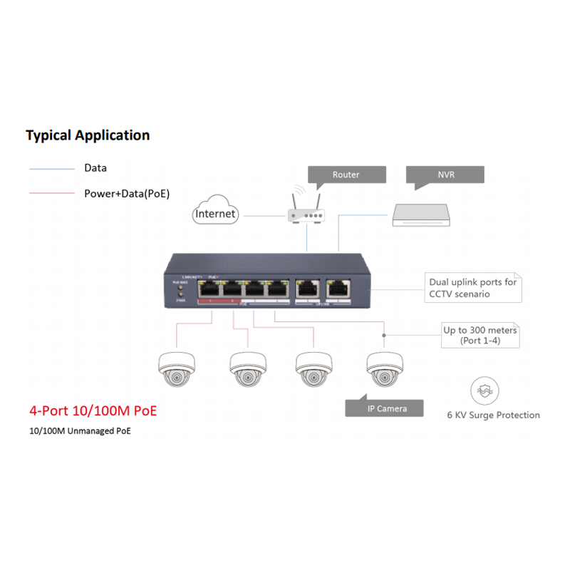 2*10/100 Мбит/с Uplink порт 4*10/100 Мбит/с портами PoE