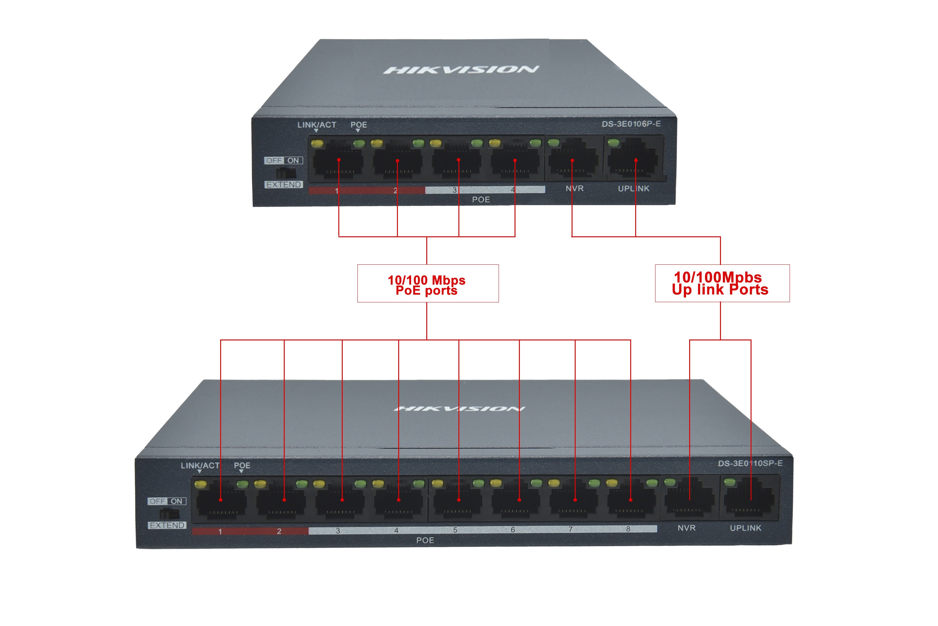 Hikvision коммутатор POE 100 Мбит/с DS-3E0106P-E(4POE + 2CH) DS-3E0110SP-E (8POE + 2CH) Быстрый Ethernet неуправляемый DC51V адаптер питания