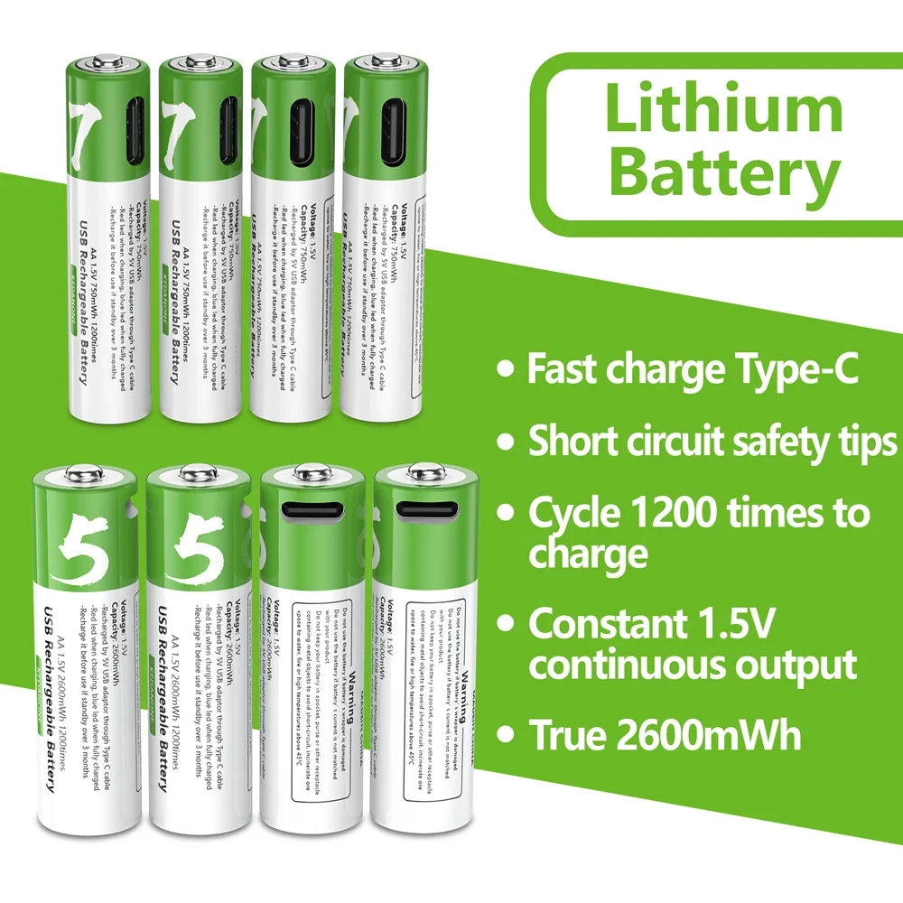 Поручать перезаряжаемые батареи лития 1,5 V AA/USB AAA 2600mwh быстрый