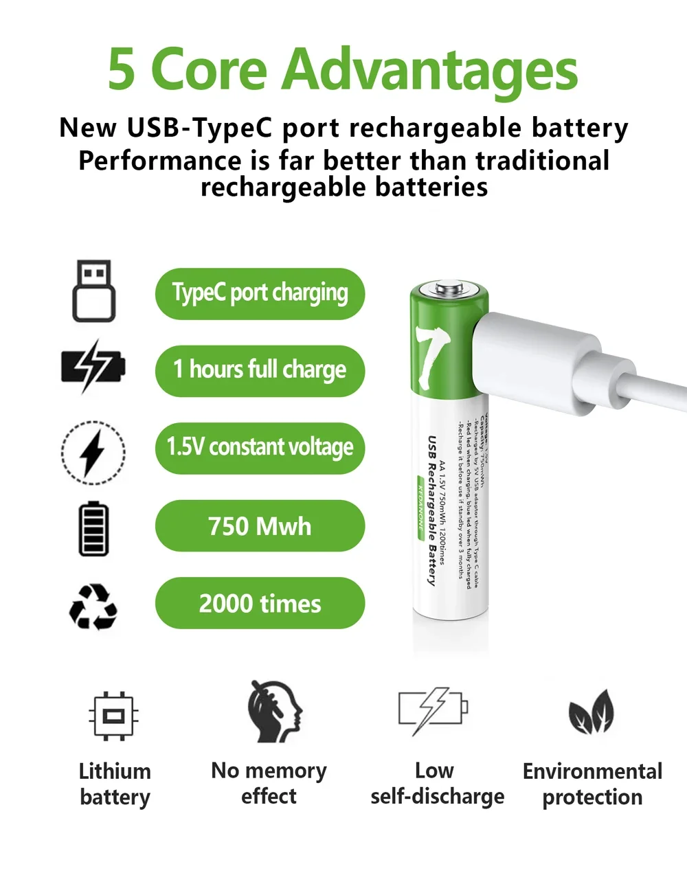 3. Может заряжаться 2000 раз, энергосбережение и защита окружающей среды.