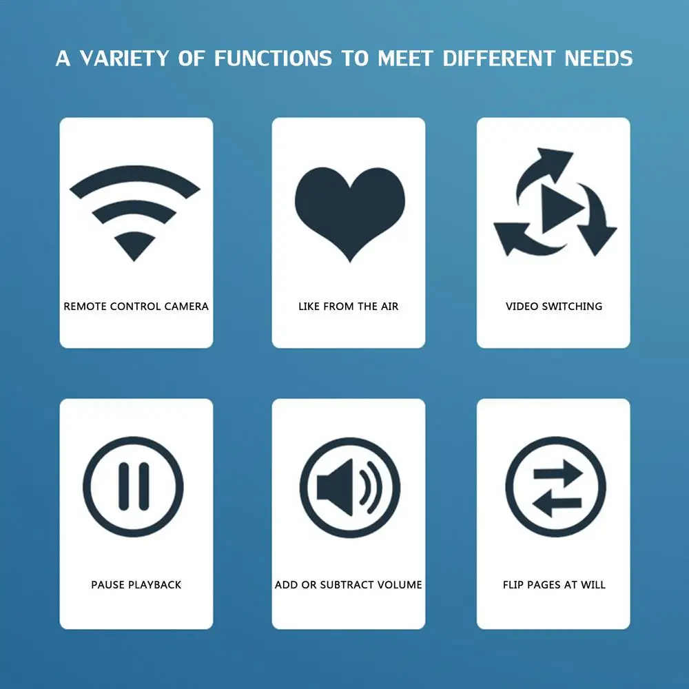 4. Широкая совместимость: страница дистанционного управления turner совместима со всеми системами iOS и Android. Напоминание: Система iOS должна включить вспомогательную сенсорную функцию, чтобы использовать этот пульт дистанционного управления для прокрутки видео.