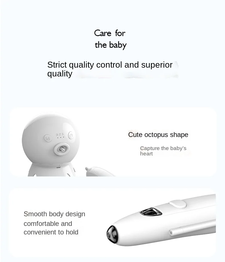 Хозяин отделен от всасывающей головки, чтобы уменьшить дискомфорт, вызванный шумом и вибрацией для ребенка;
