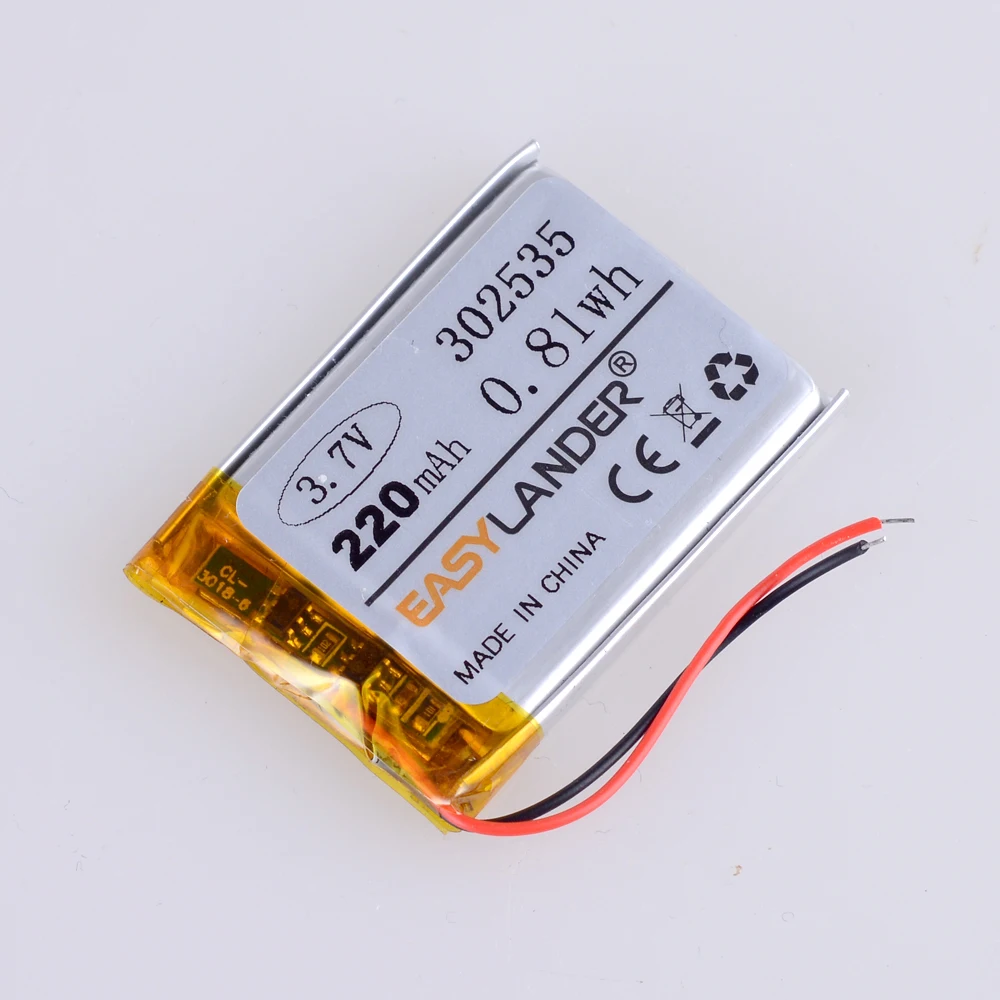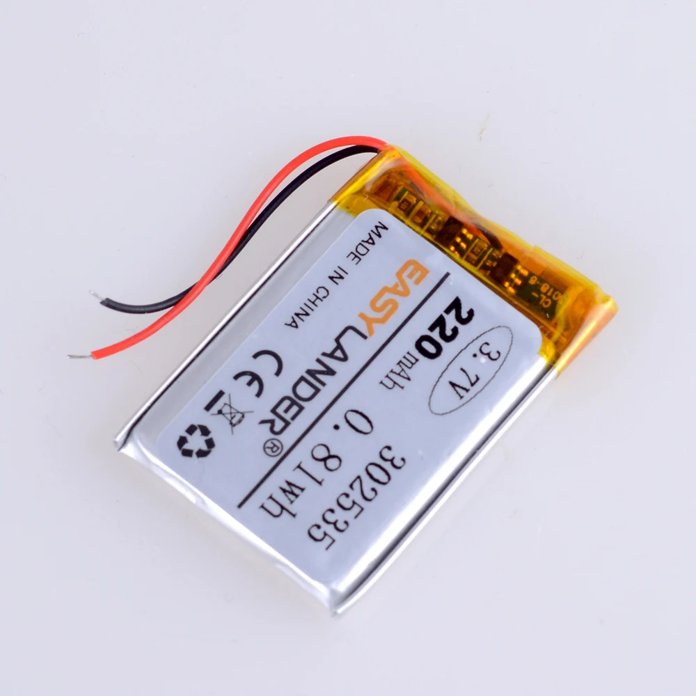 Перезаряжаемый литий-полимерный литий-ионный аккумулятор для игрушек, умных часов, mp3, mp4, bluetooth, наушников, динамиков, DVR, GPS, PDA, 302535, 3,7 в, 220 мАч