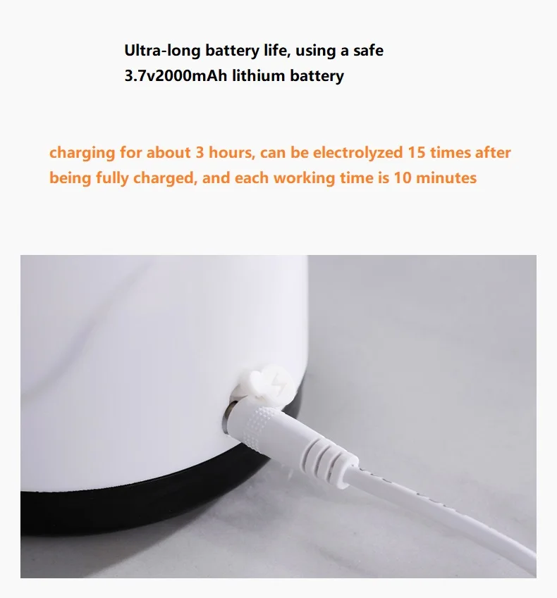 1. сверхдлительный Срок службы батареи, использование безопасной литиевой батареи 3,7 В 200 мАч, зарядка около 3 часов, может быть электролизована 15 раз после полной зарядки, и каждое рабочее время составляет 10 минут