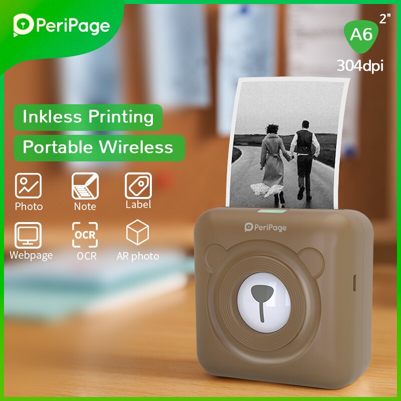 PeriPage милый коричневый А6 мини карманные принтеры Bluetooth термопринтер мобильный телефон Android IOS принтер этикеток для детей подарок