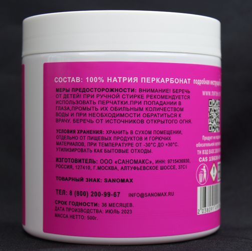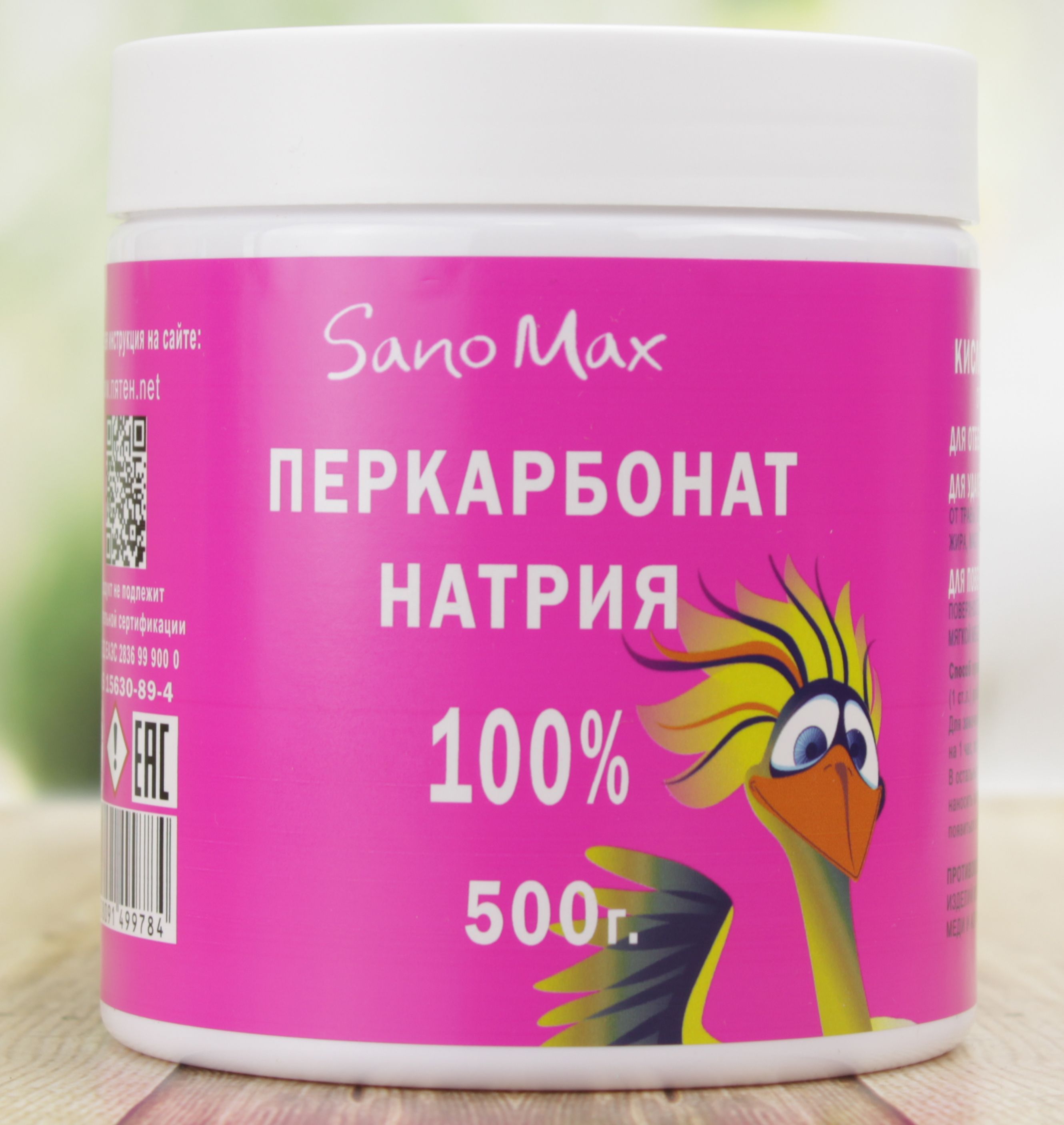 Перкарбонат натрия "SANOMAX" по 500гр. Кислородный отбеливатель - пятновыводитель.