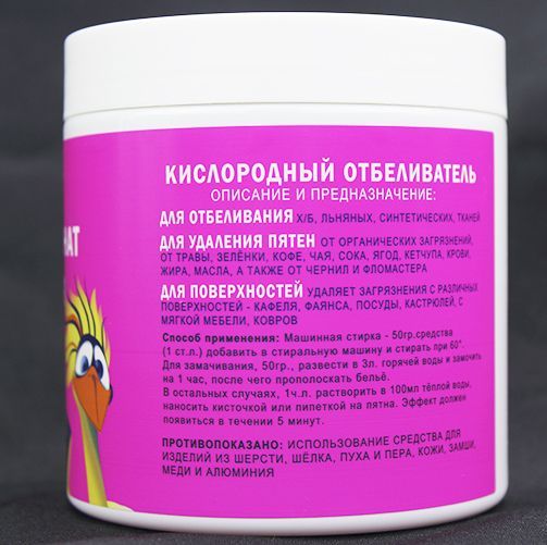 Перкарбонат натрия работает даже в холодной воде. Во время растворения в воде, образуется активный кислород