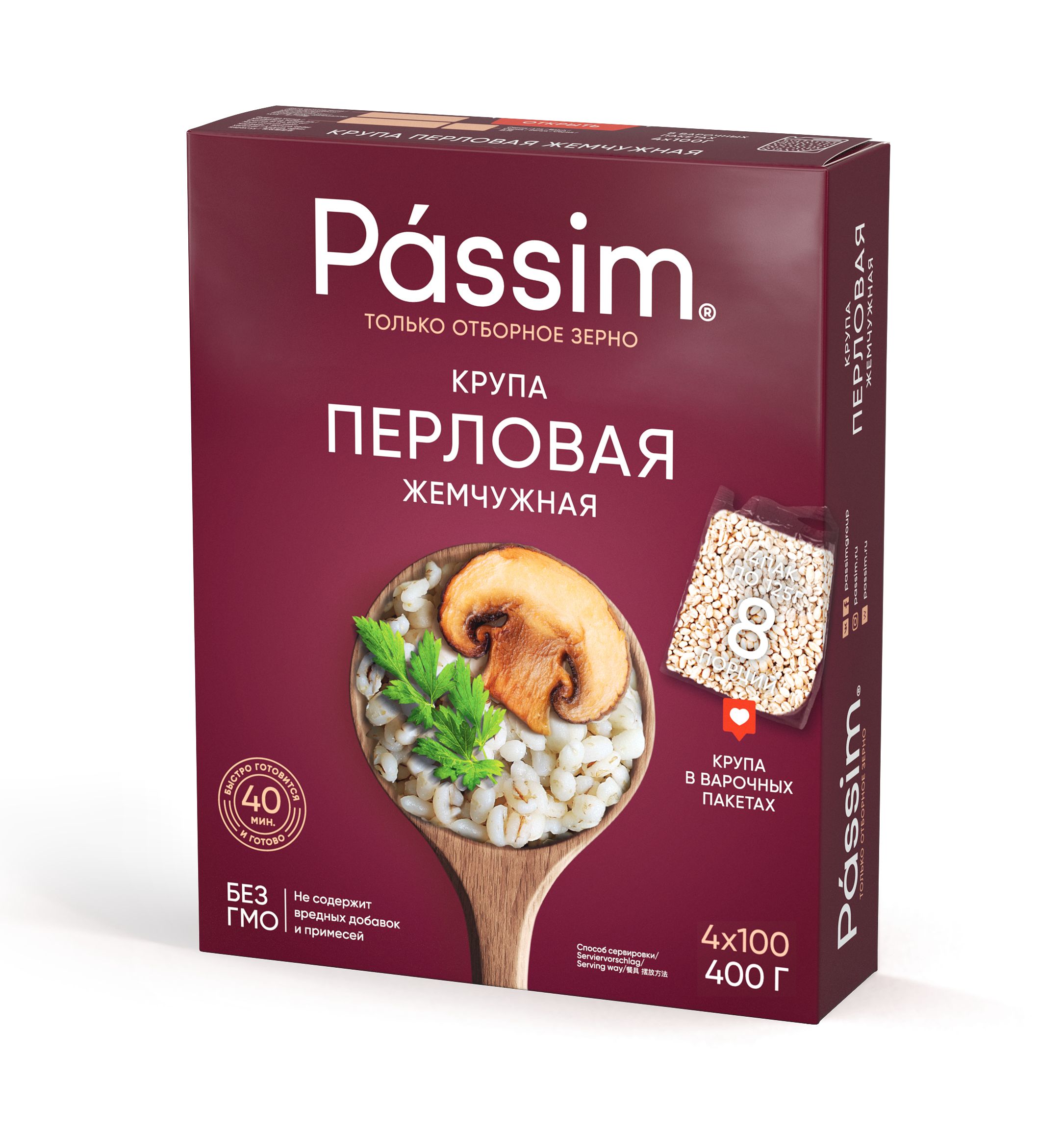Перловая крупа №1 Жемчужная отборная PASSIM в пакетиках для варки ГОСТ, 100 г х 4 шт. 400 г