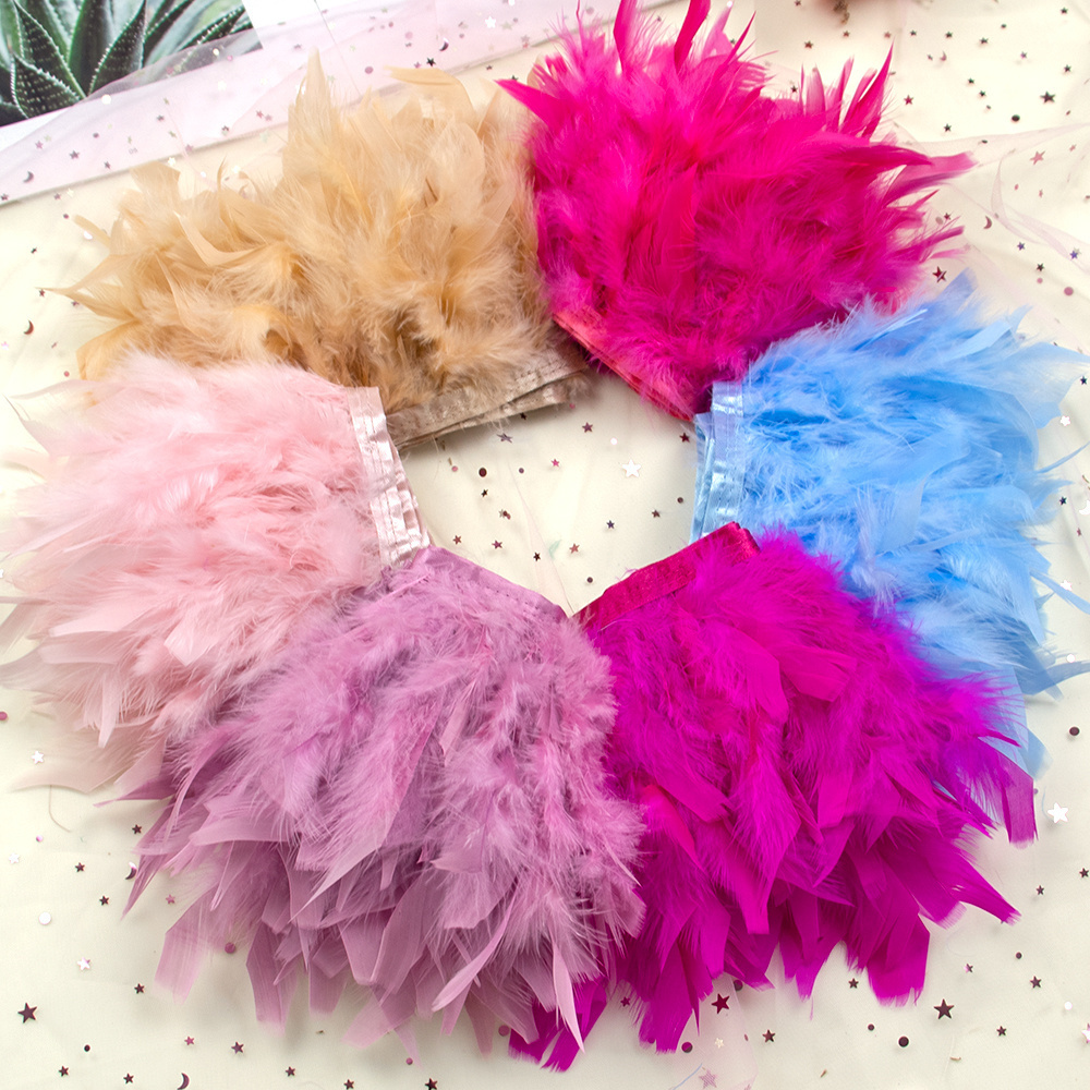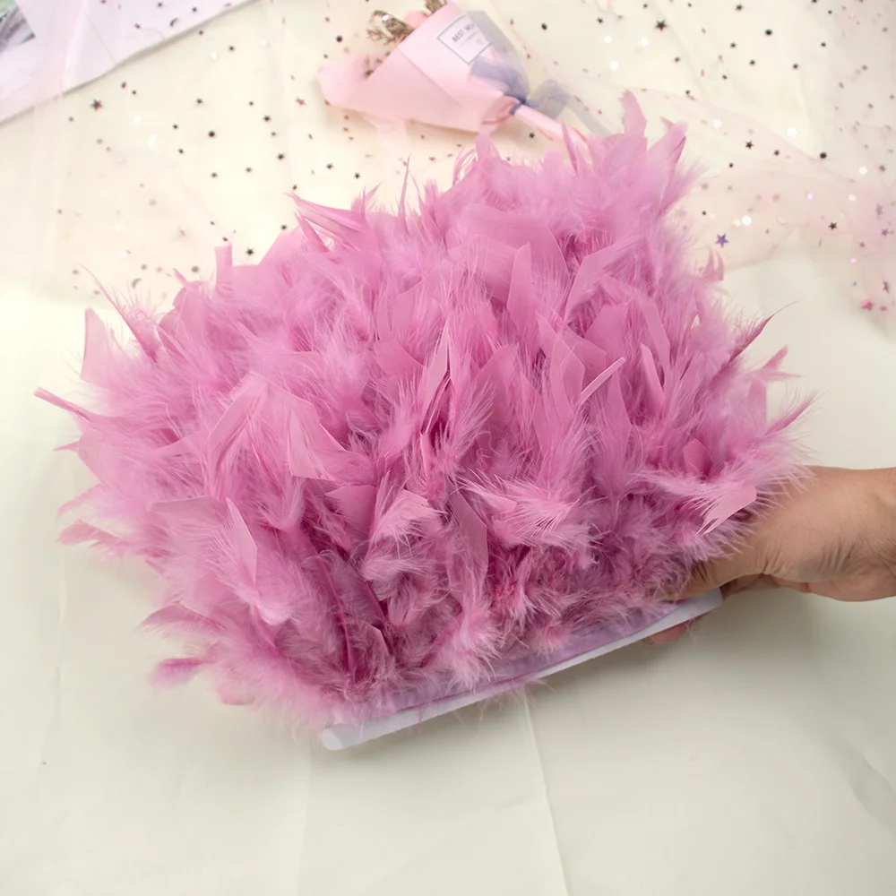 2m Pink Turkey Feather Trim Needlework Fringe Ribbon Wedding Dress Decoration Turkey Marabou Plume Clothes DIY Craft Wholesale