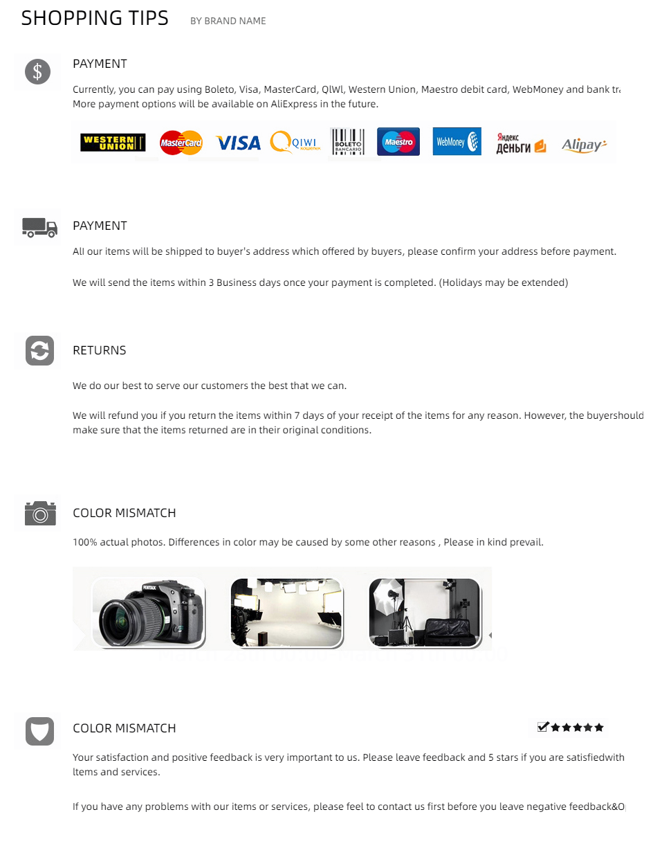 Note2:Please check your shipping address carefully before payment, it can't be changed if order was completed.