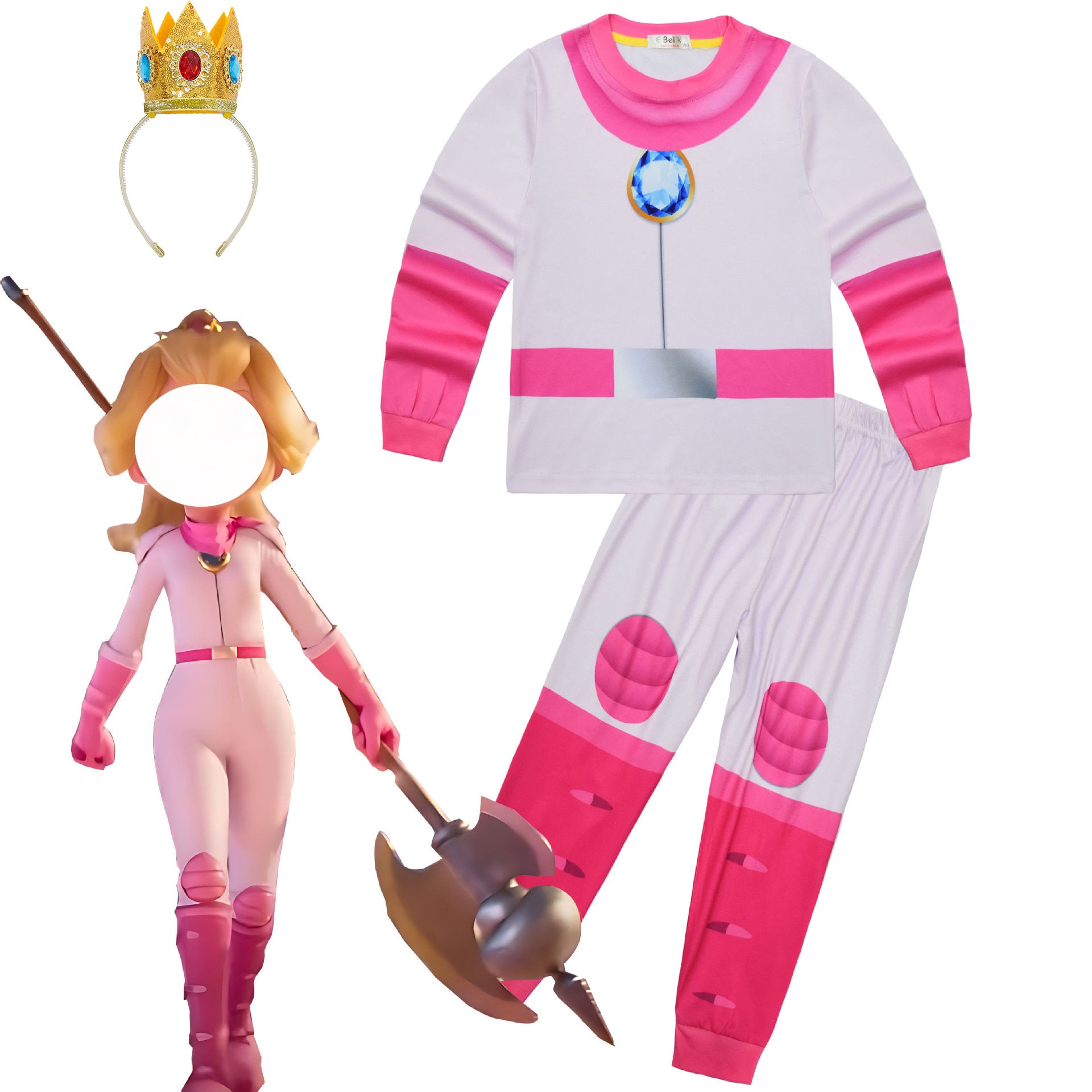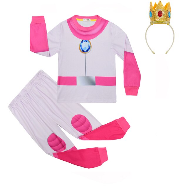 Персиковый косплей для детей, косплей для девочек-подростков, Детский костюм на Хэллоуин, комплект одежды, топ с длинными рукавами + брюки + корона