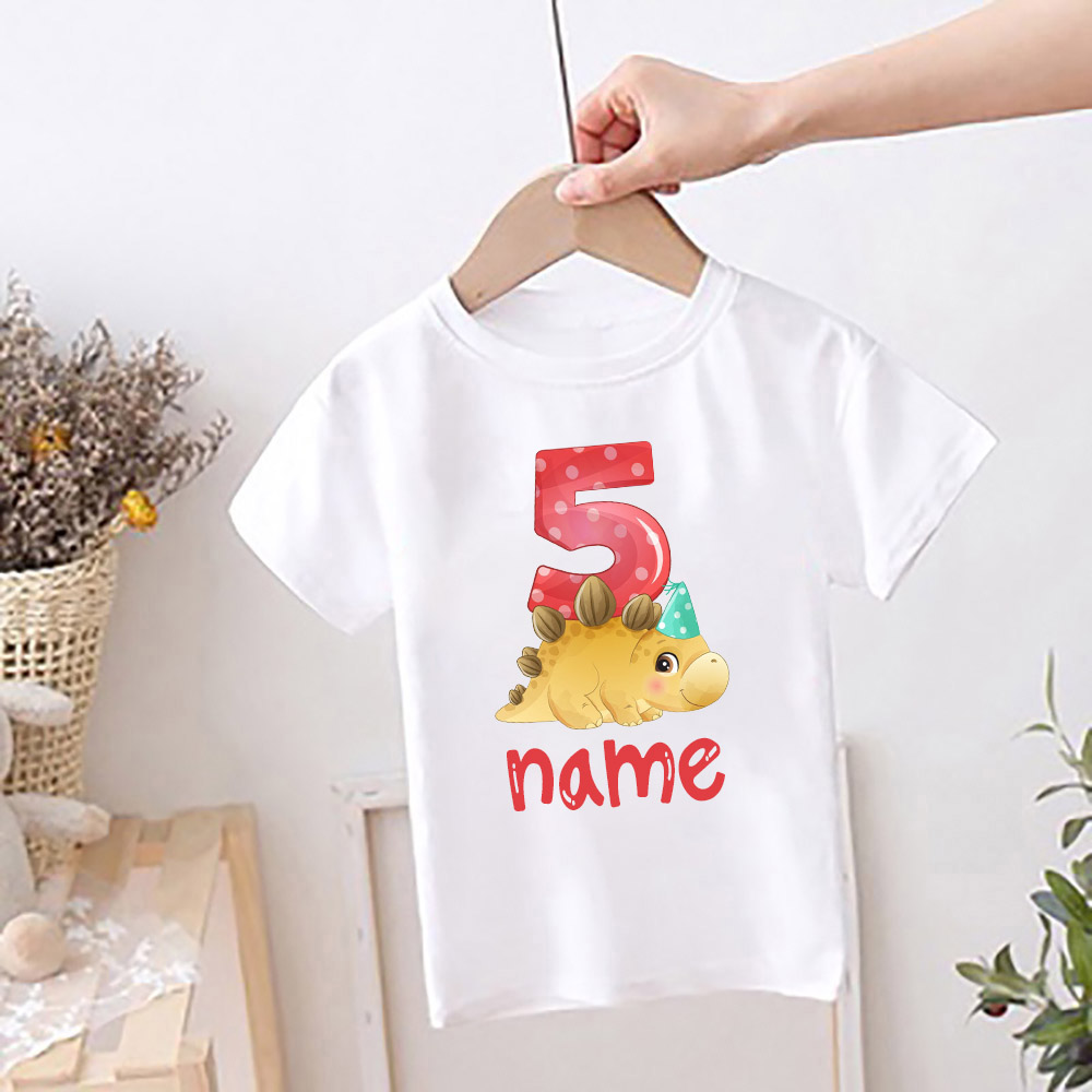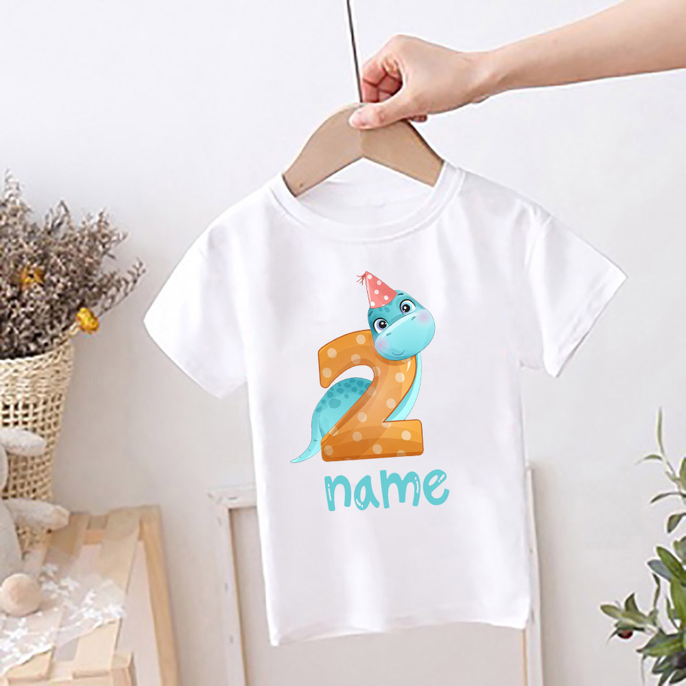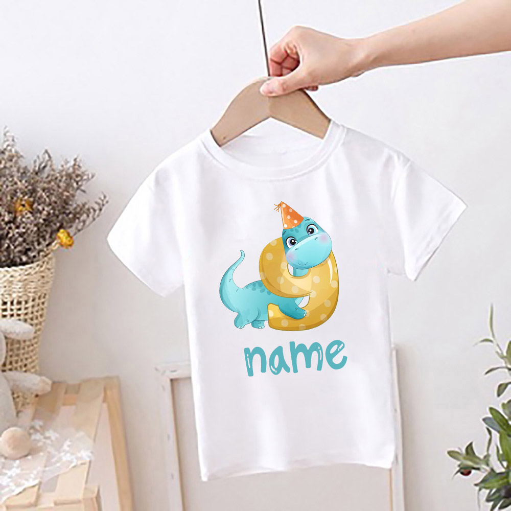 Персонализированная детская футболка на день рождения, детская одежда с именем на заказ, топы с мультяшным принтом динозавра, рубашка для мальчиков и девочек, Милая футболка на день рождения