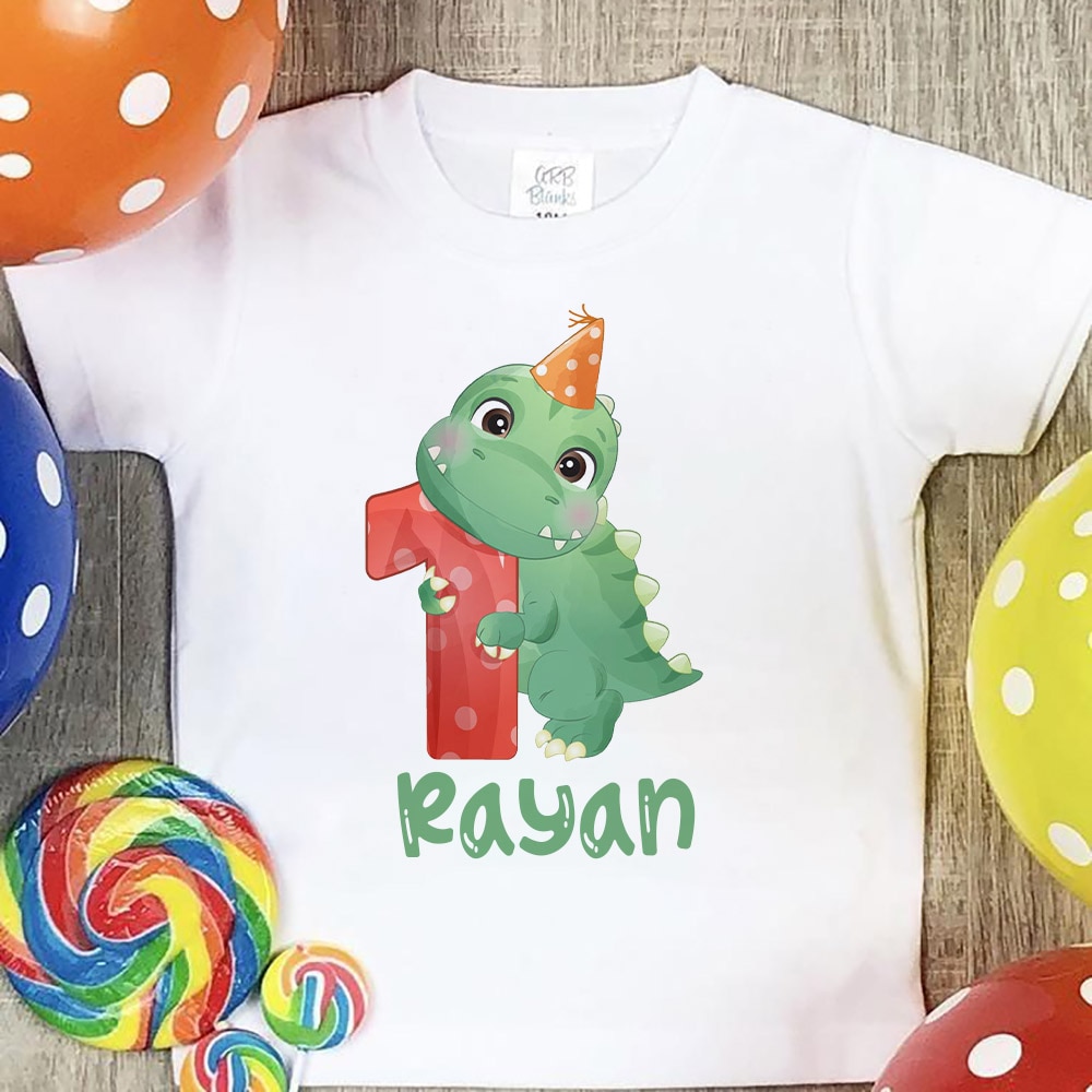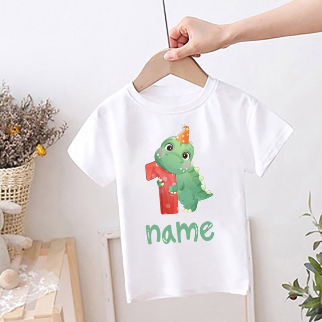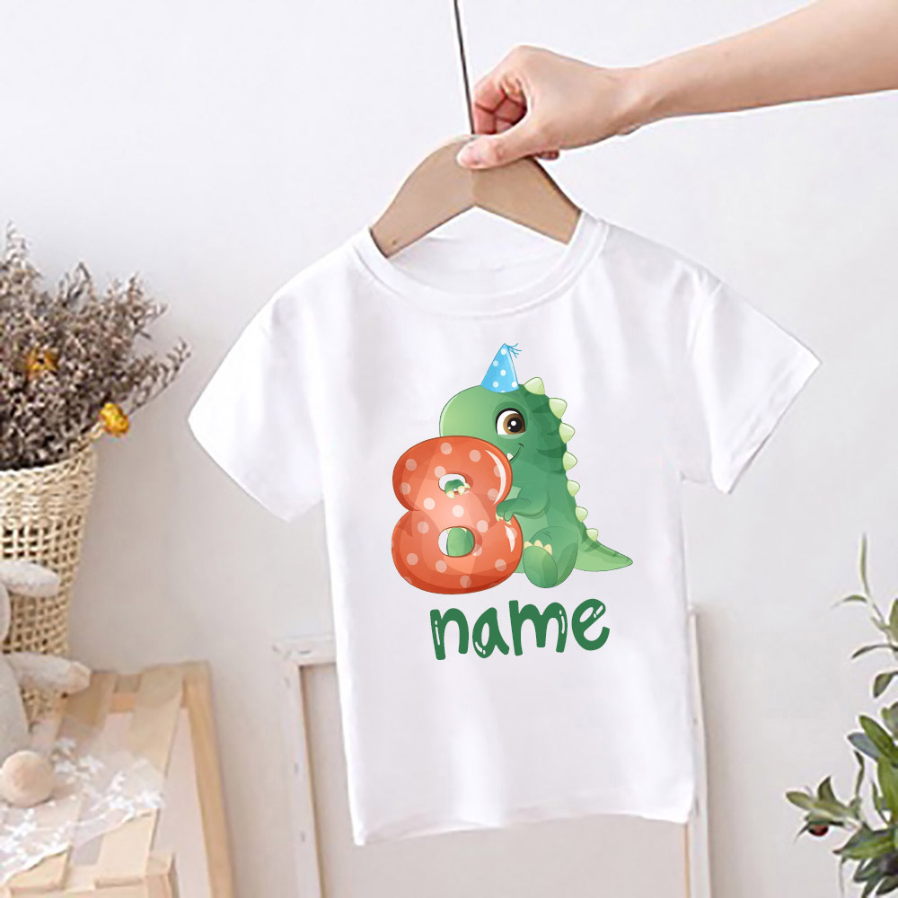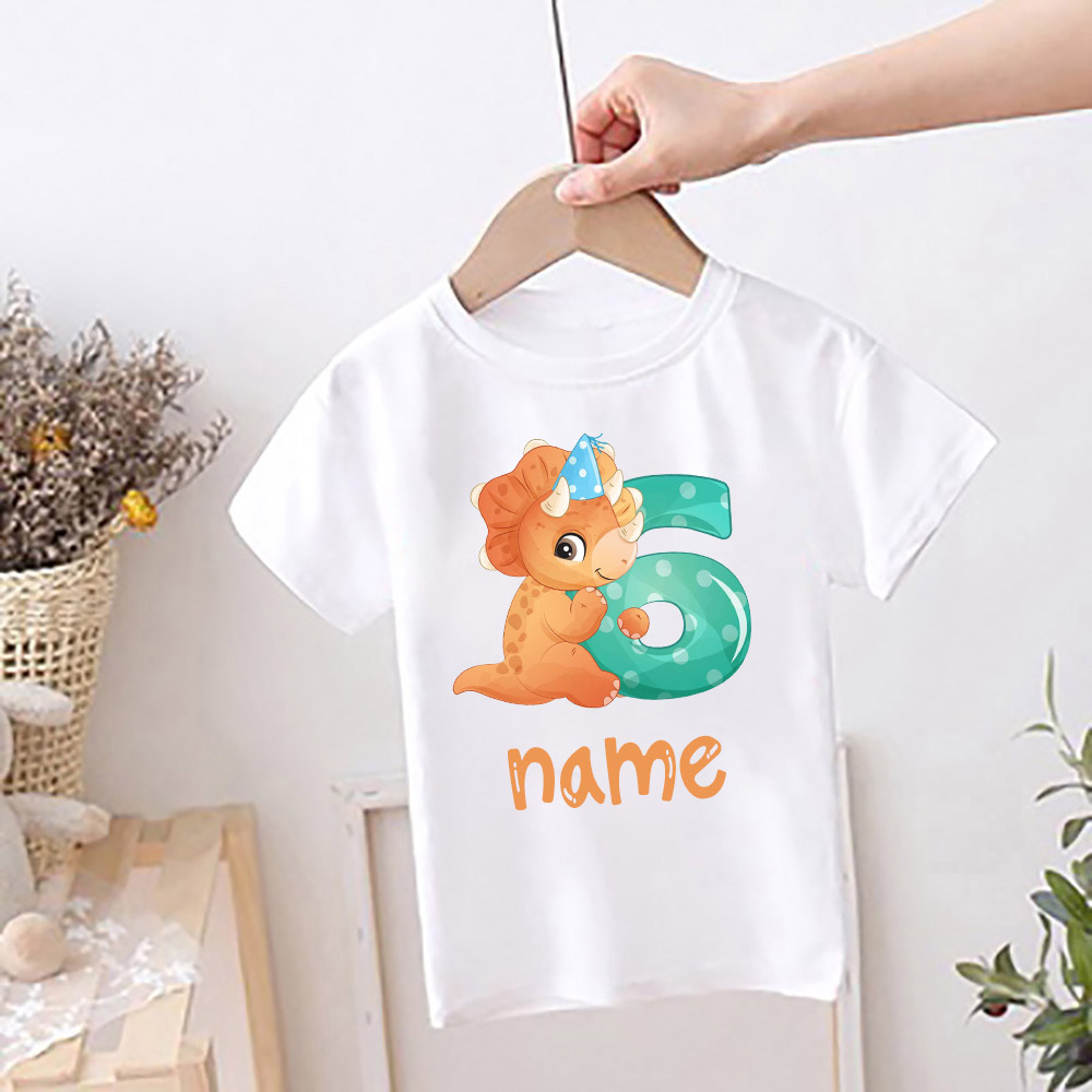 Персонализированная детская футболка на день рождения, детская одежда с именем на заказ, топы с мультяшным принтом динозавра, рубашка для мальчиков и девочек, Милая футболка на день рождения