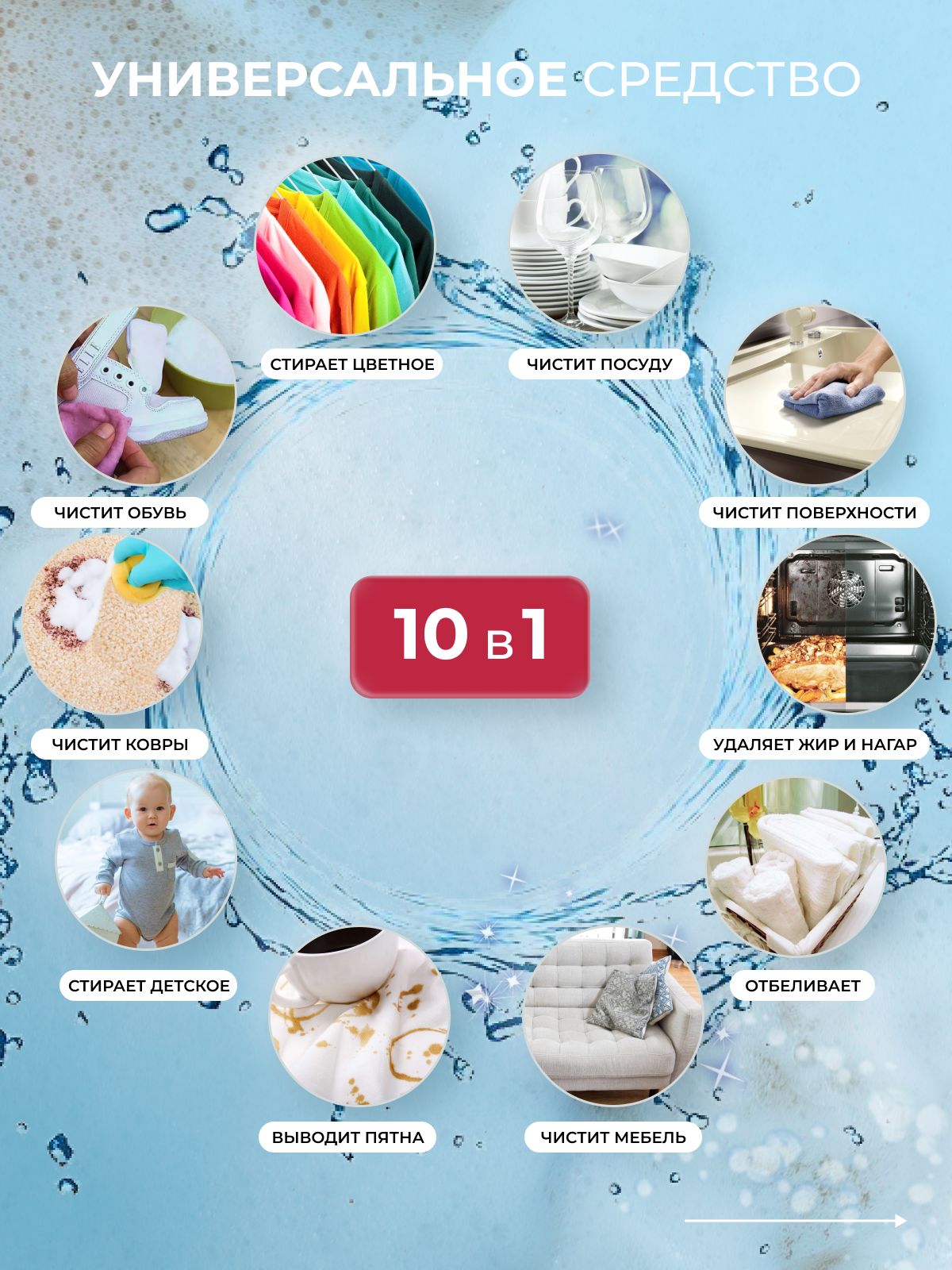 Особенности применения: Антибактериальный эффект, Отбеливание, Экосредство, Эффективен в холодной воде