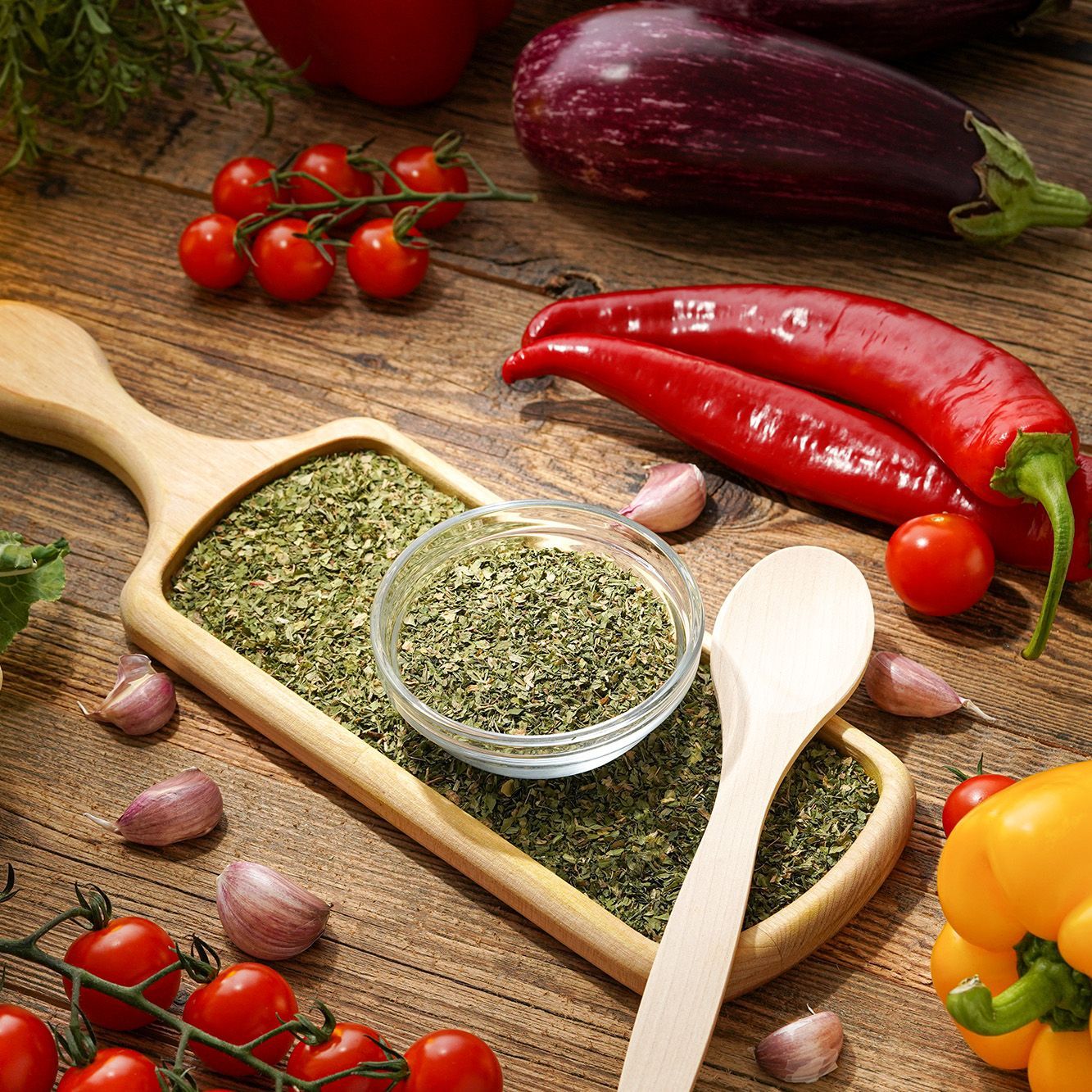 Описание: Петрушка сушеная готовится из листьев растения Petroselinum crispum, которое в основном выращивается в Средиземноморском регионе, Египте и Северной Америке. Петрушка сушеная приправа популярная, используемая в различных кухнях мира, включая средиземноморскую, ближневосточную и американскую. Его используется как приправа для шашлыка, овощей, супов, соусов и салатов. Петрушка содержит антиоксиданты, такие как флавоноиды, которые могут помочь защитить клетки от повреждения. Это также может помочь улучшить пищеварение, регулировать уровень сахара в крови и уменьшить воспаление. Данный ингредиент входит в состав популярных блюд. Используется как приправа для супа, салата, соусов и овощных блюд.
