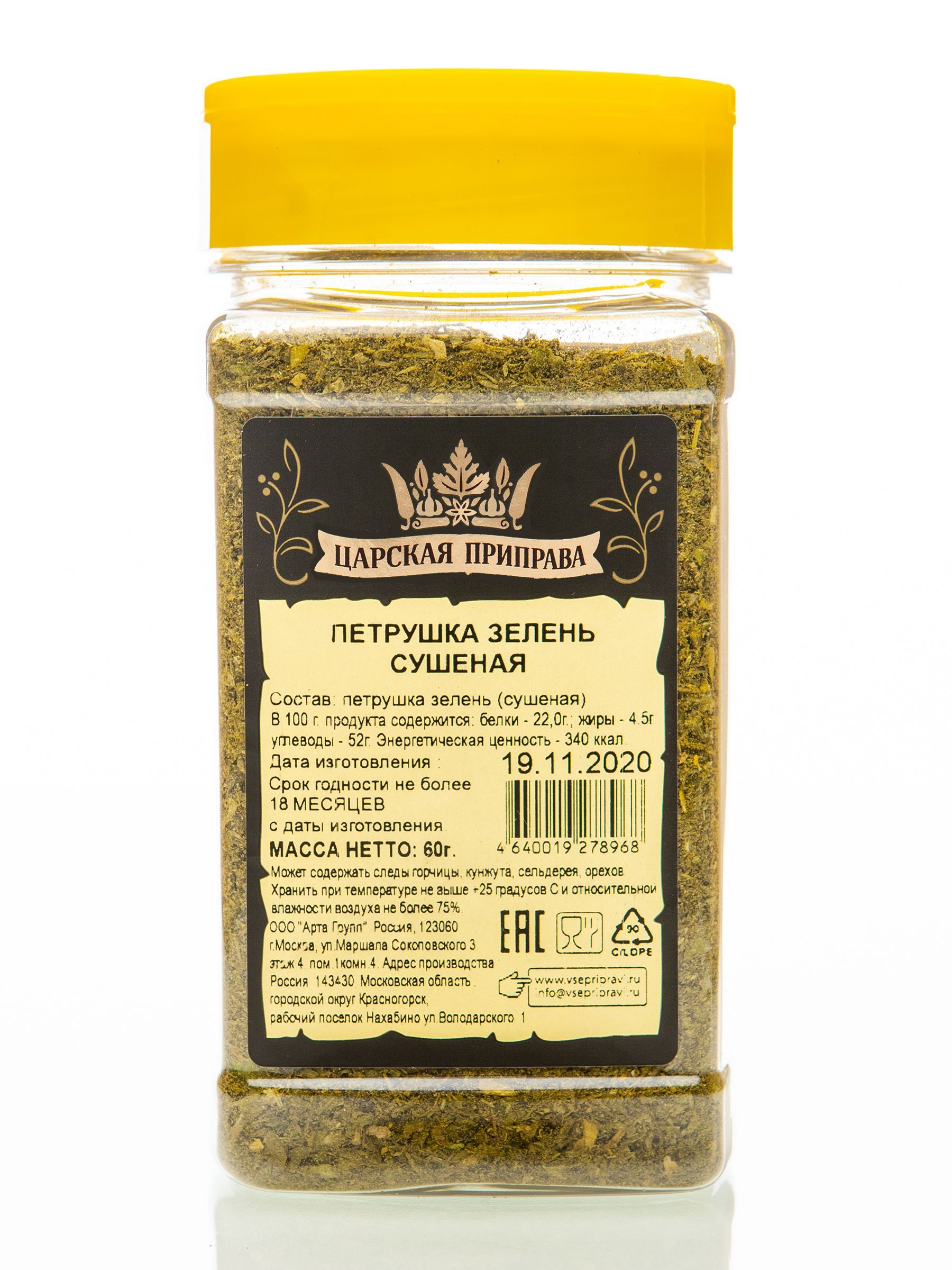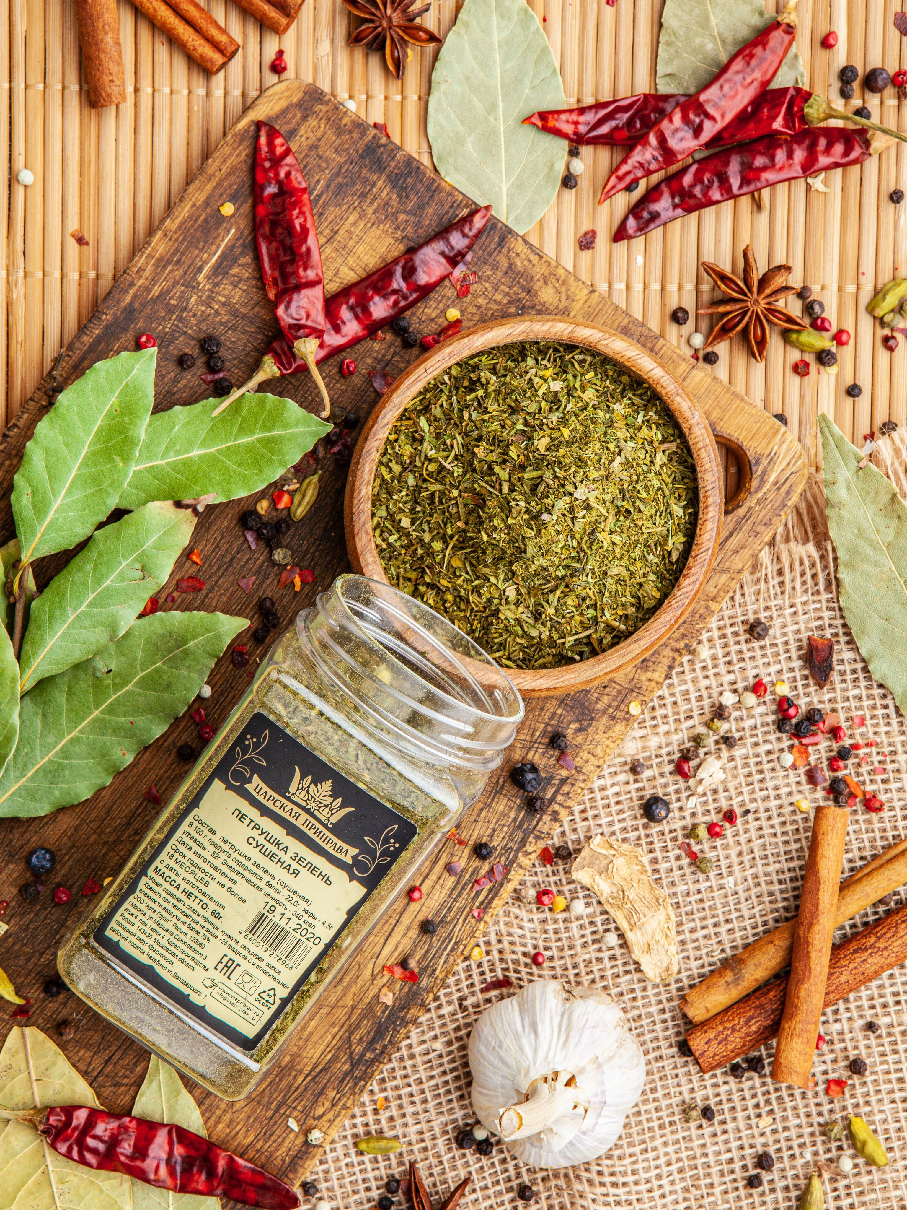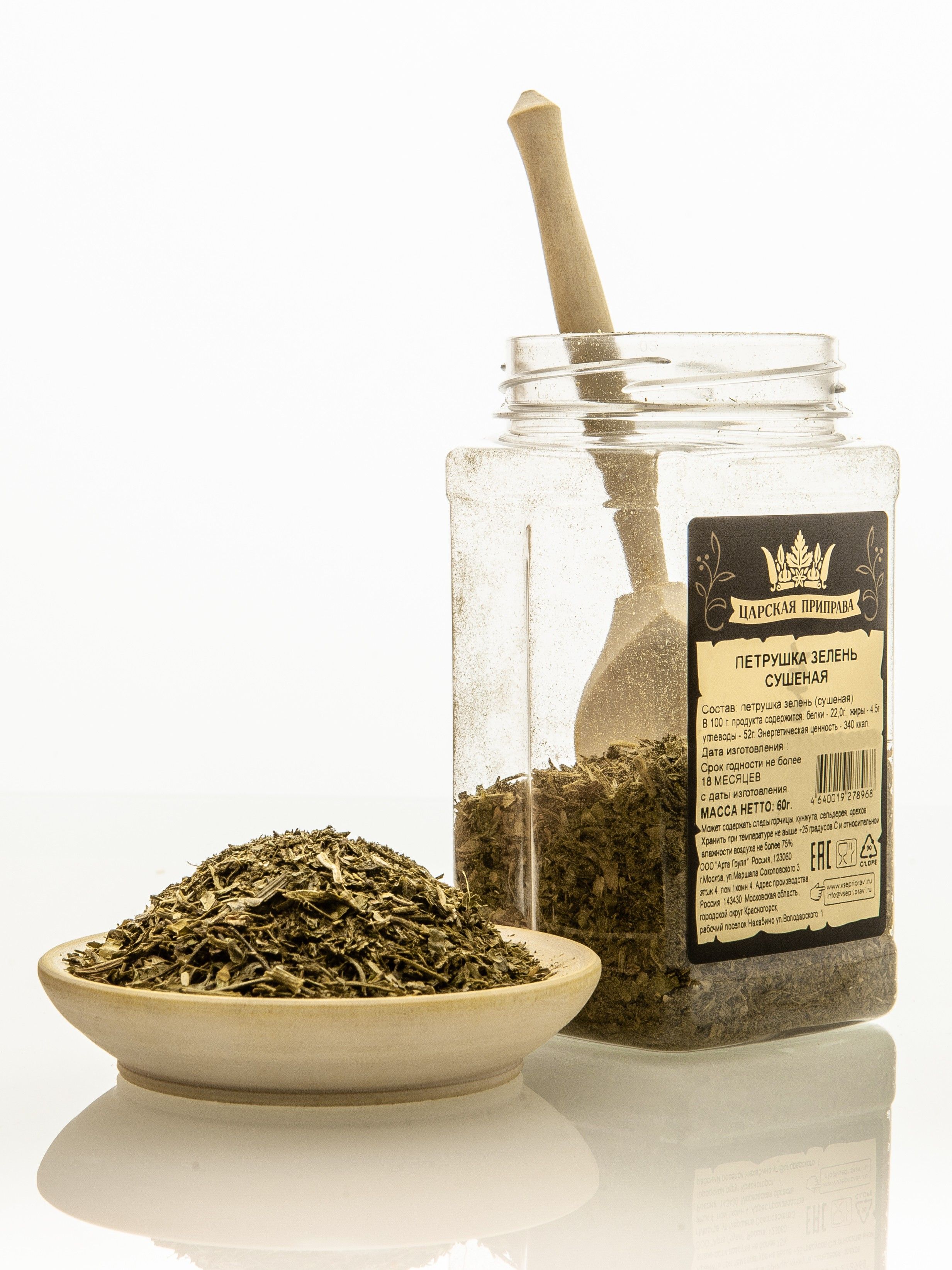 Петрушка зелень сушеная, натуральная, Царская приправа, ПЭТ с дозатором, 60 г.