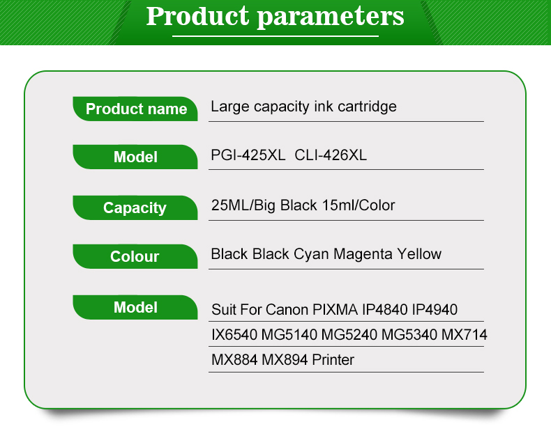PGI-425 Cli-426 совместимый чернильный картридж для принтера Canon PGI425 CLI426 PIXMA IP4840 IP4940 IX6540 MG5140 MG5240 MG5340 MX714